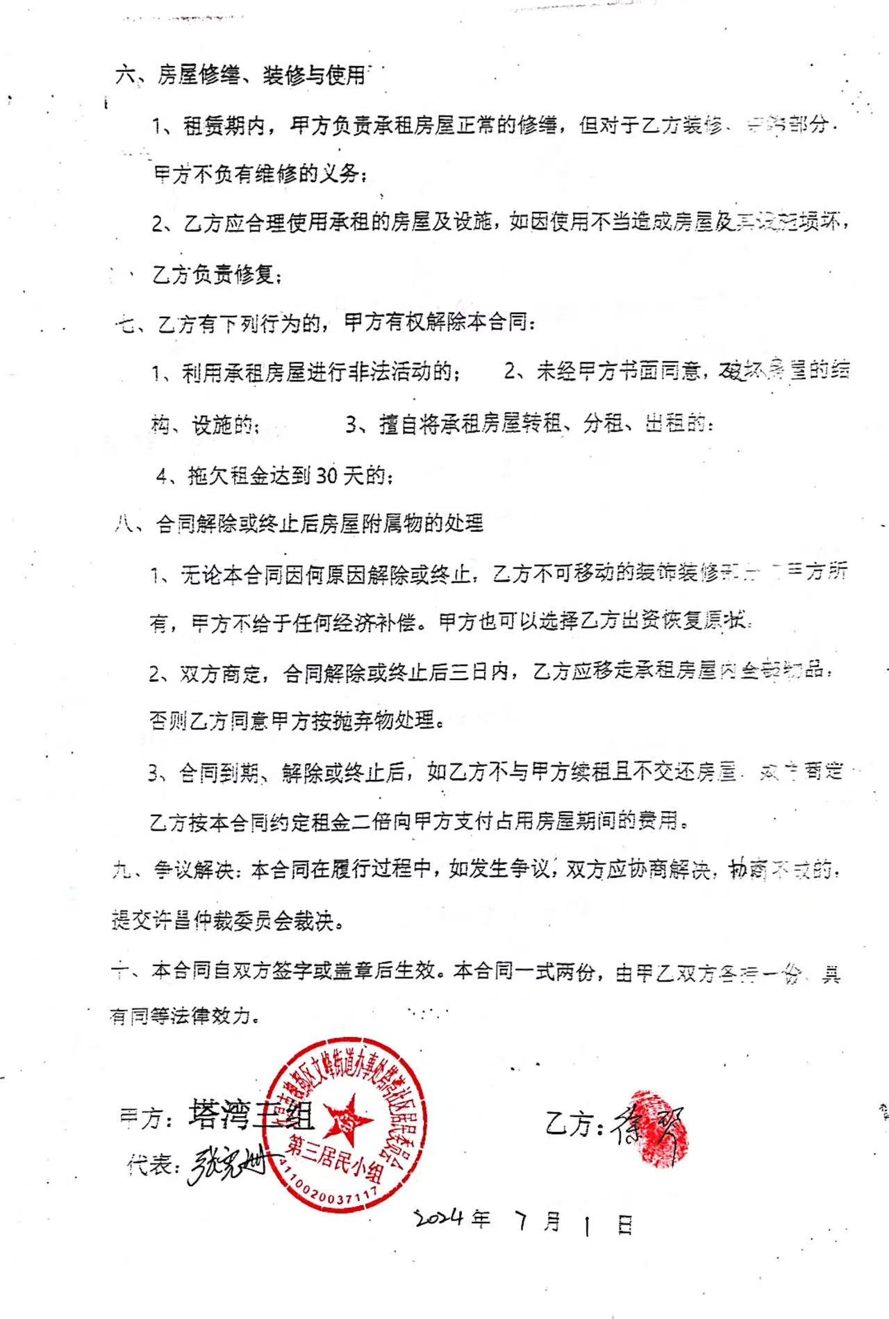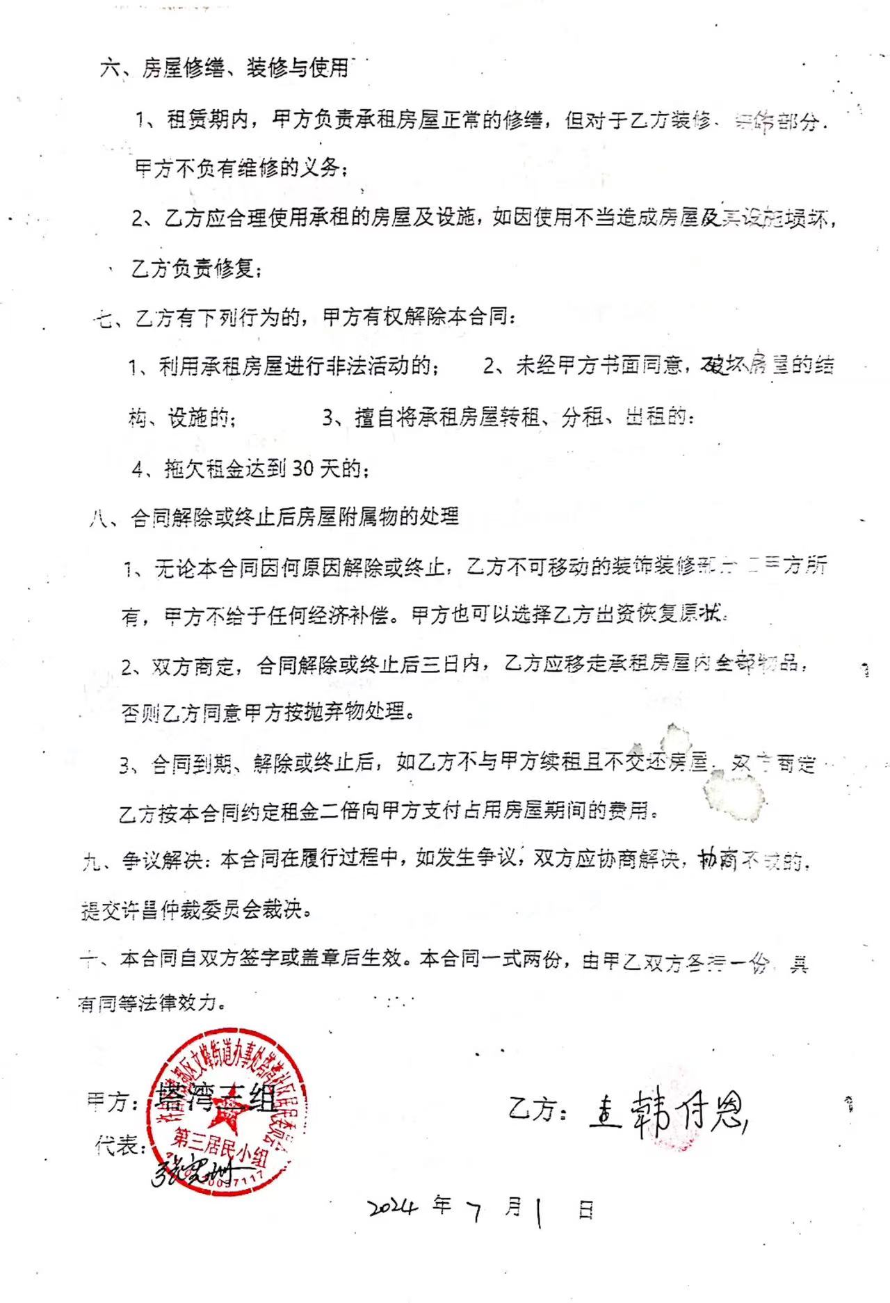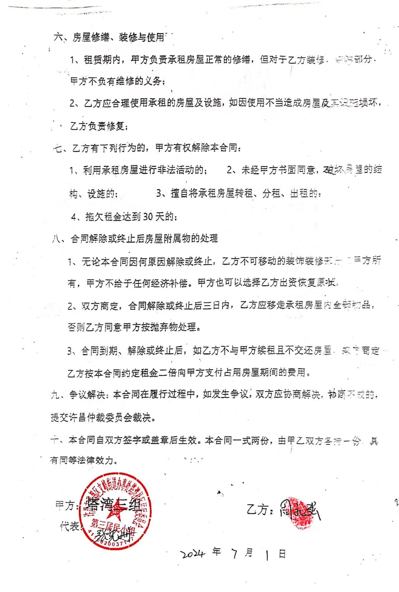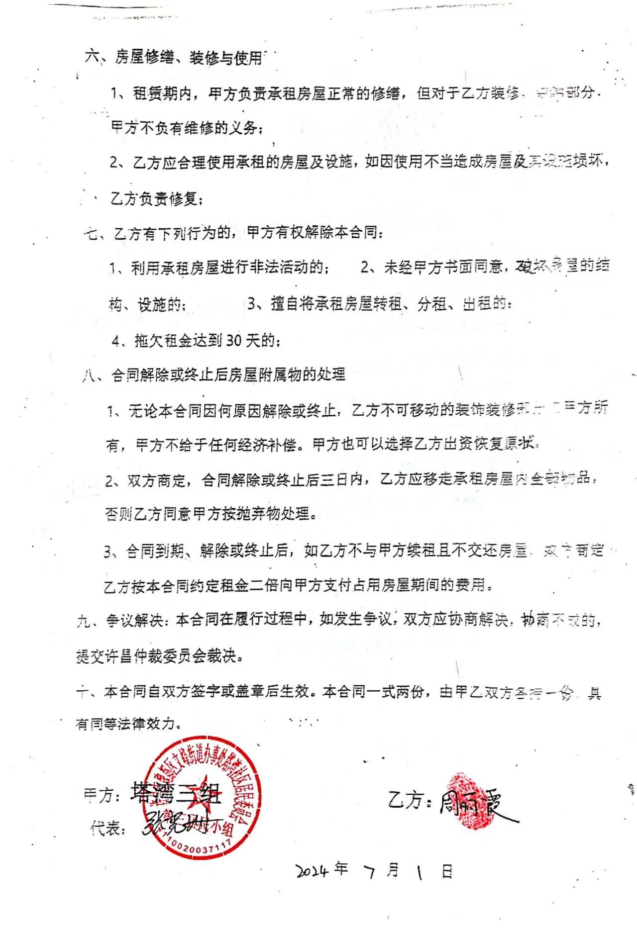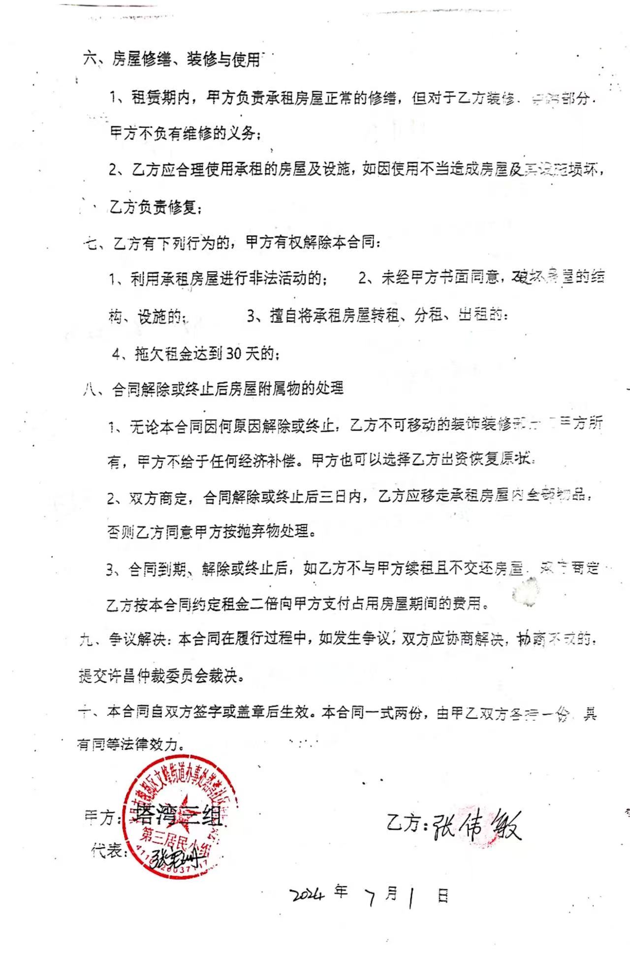 文峰办事处塔湾社区第四居民小组门面房及场院租赁协议
