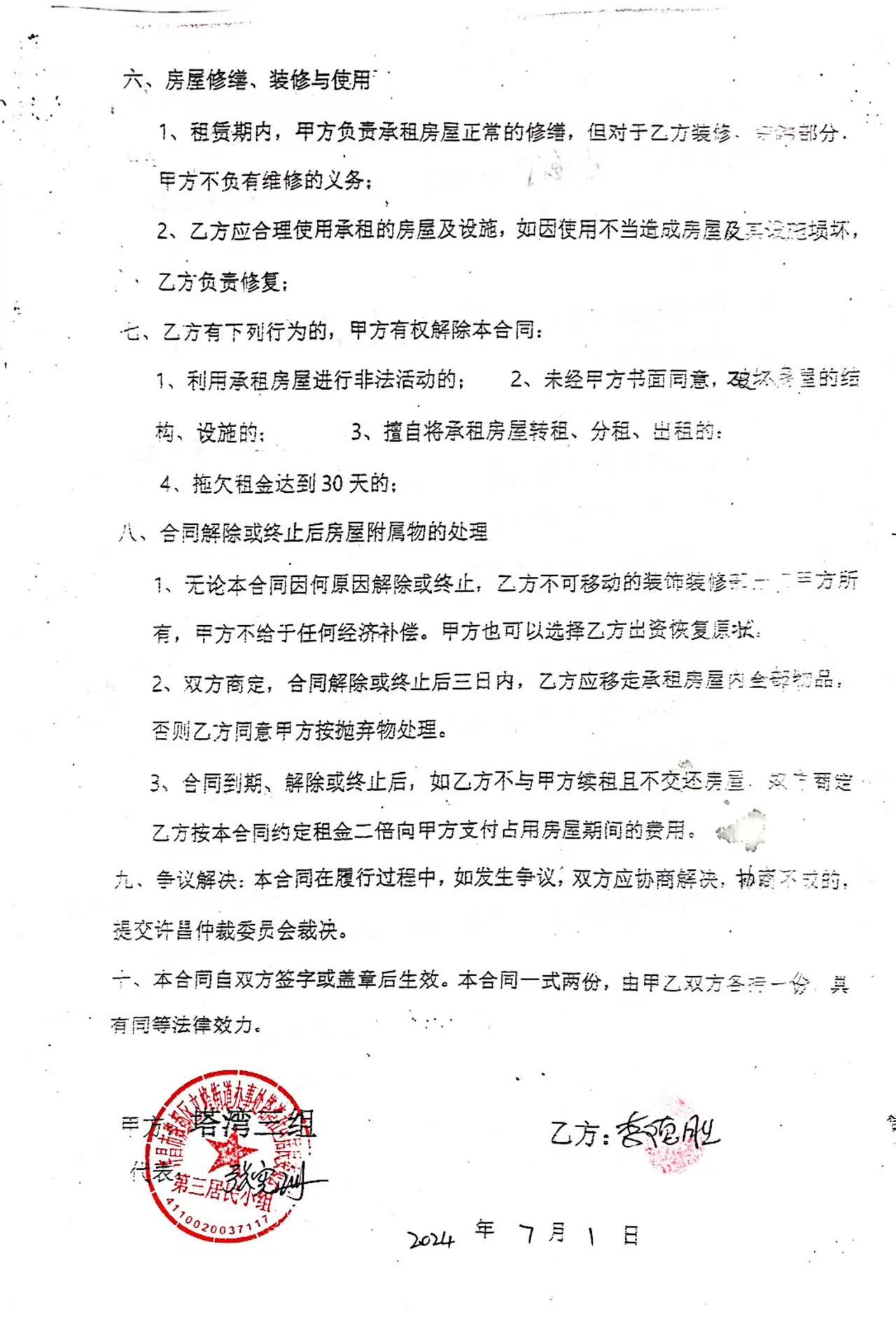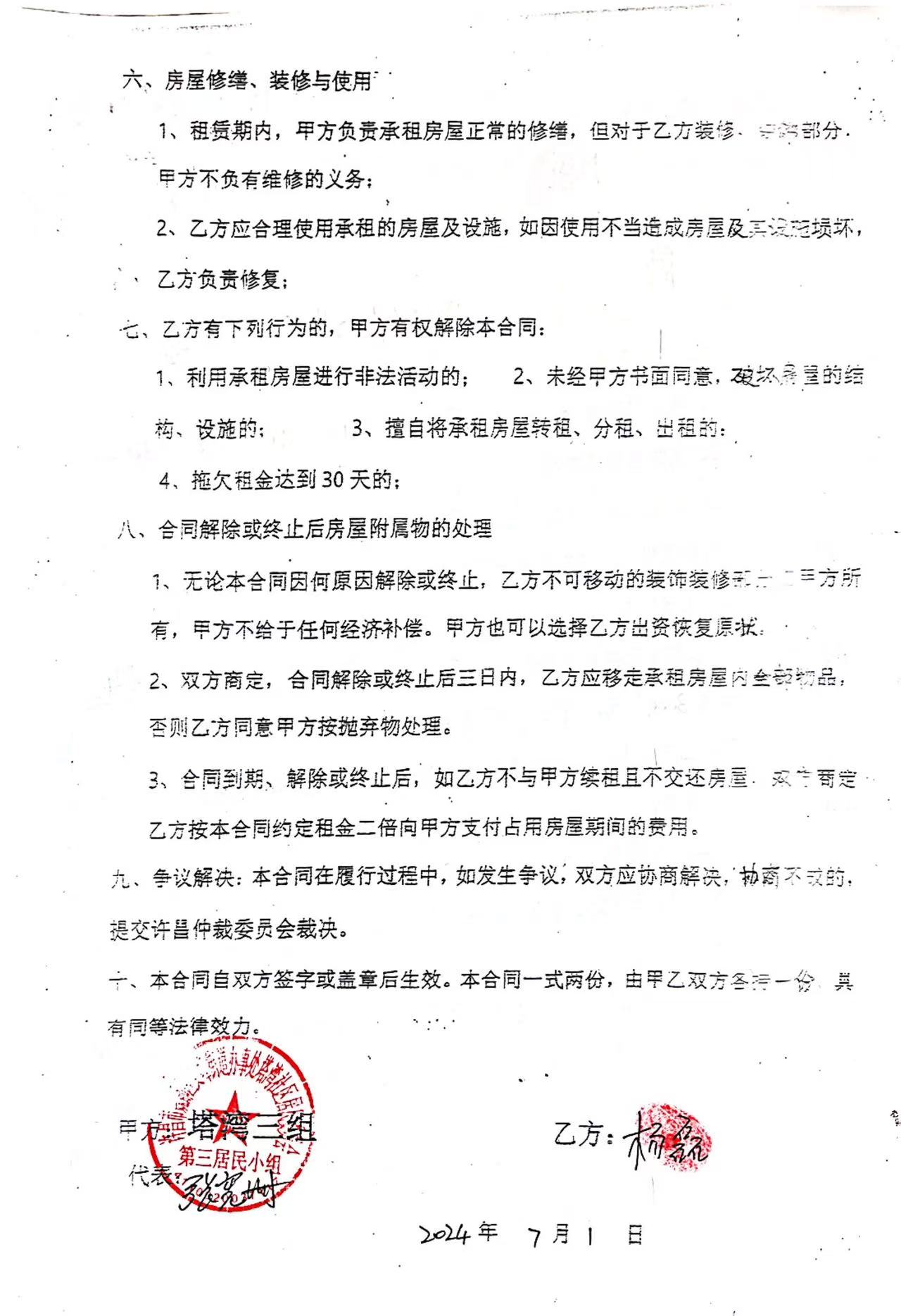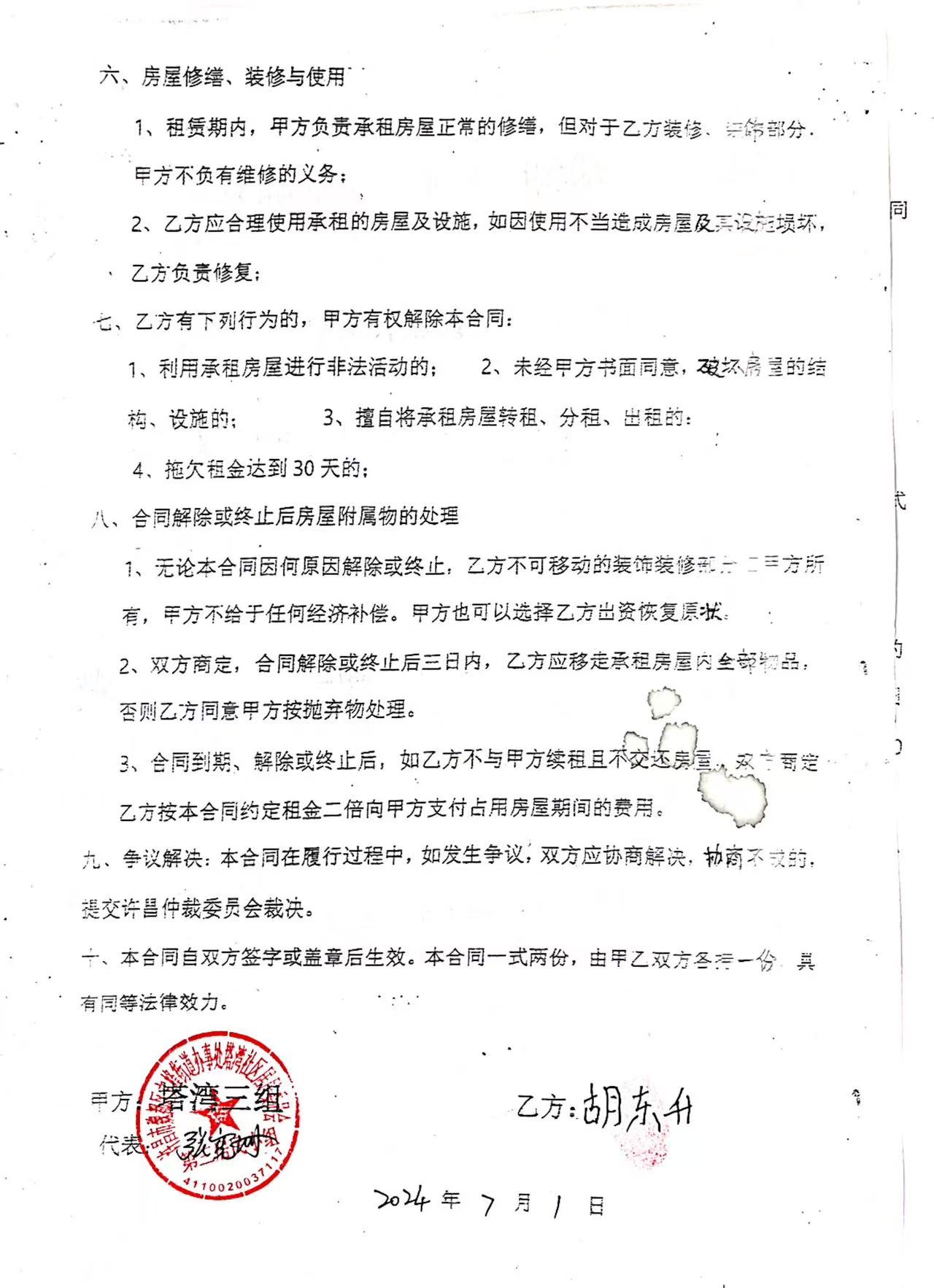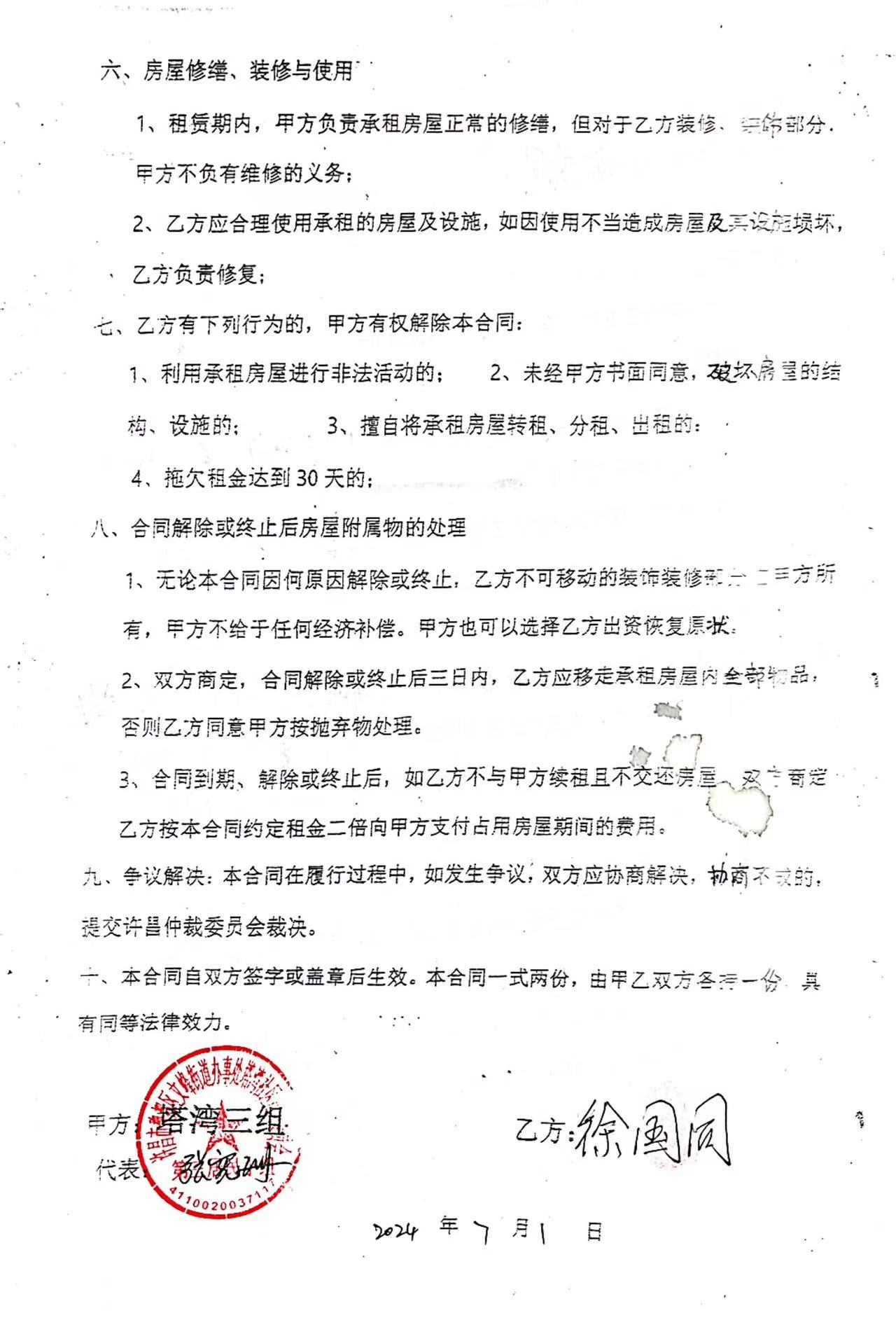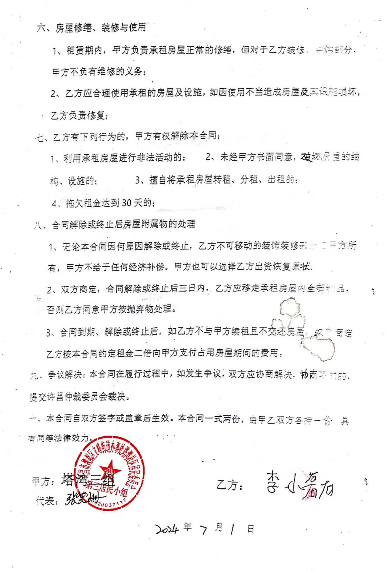 文峰办事处塔湾社区第四居民小组门面房及场院租赁协议