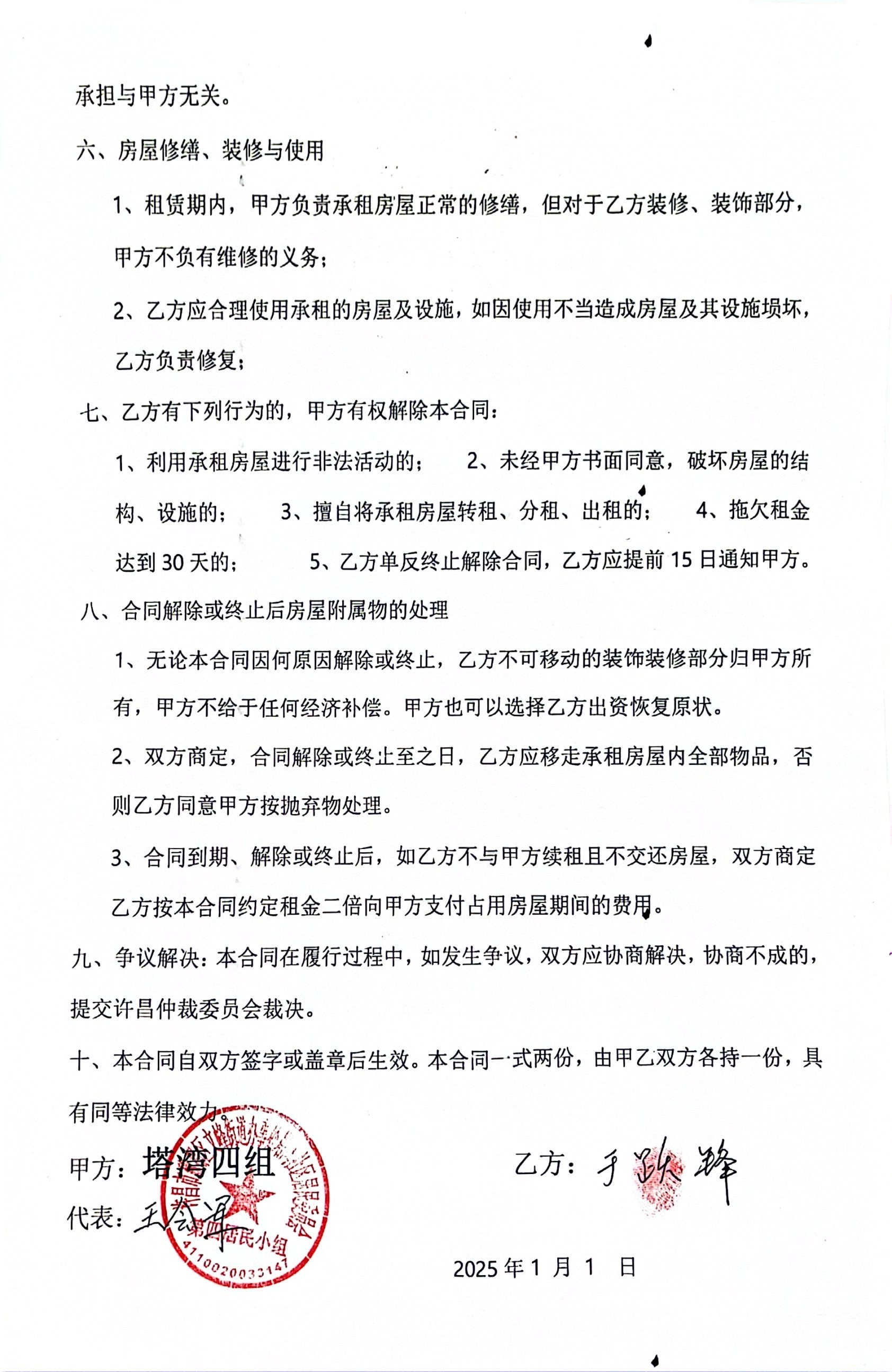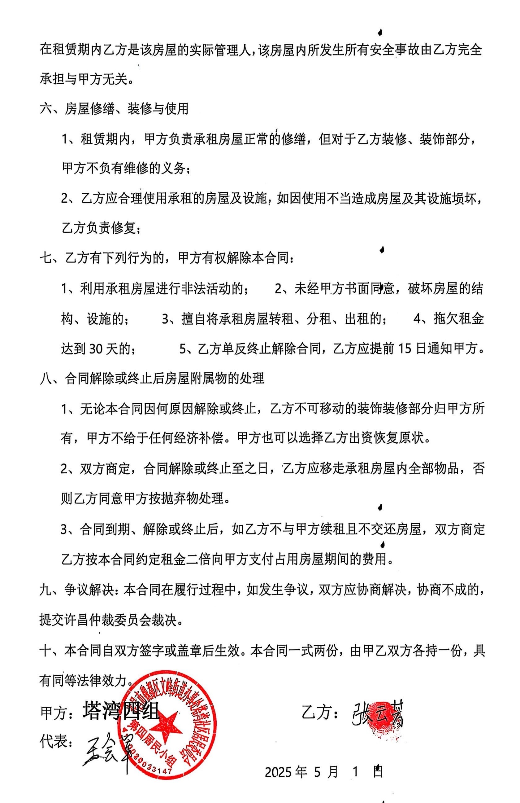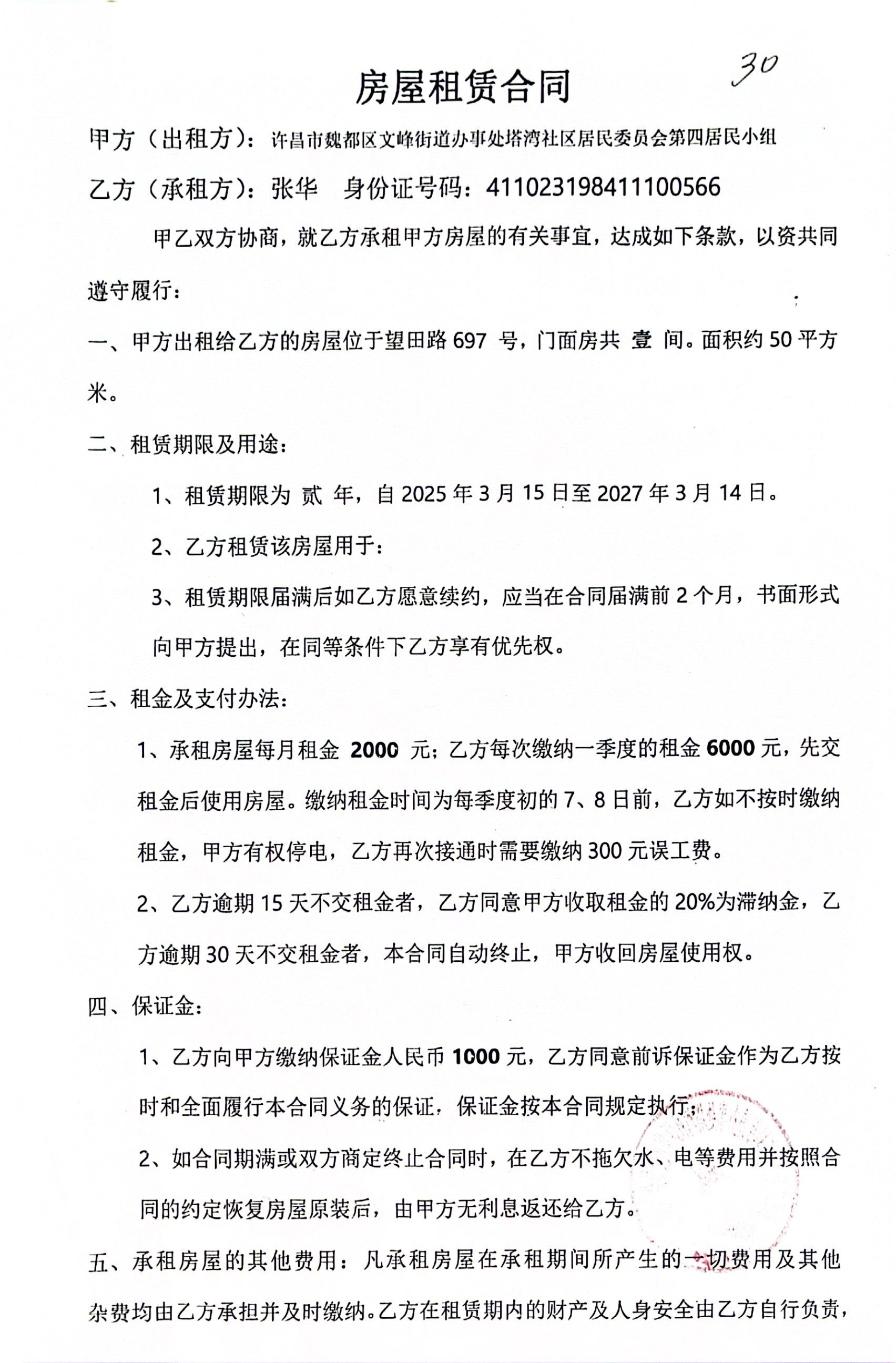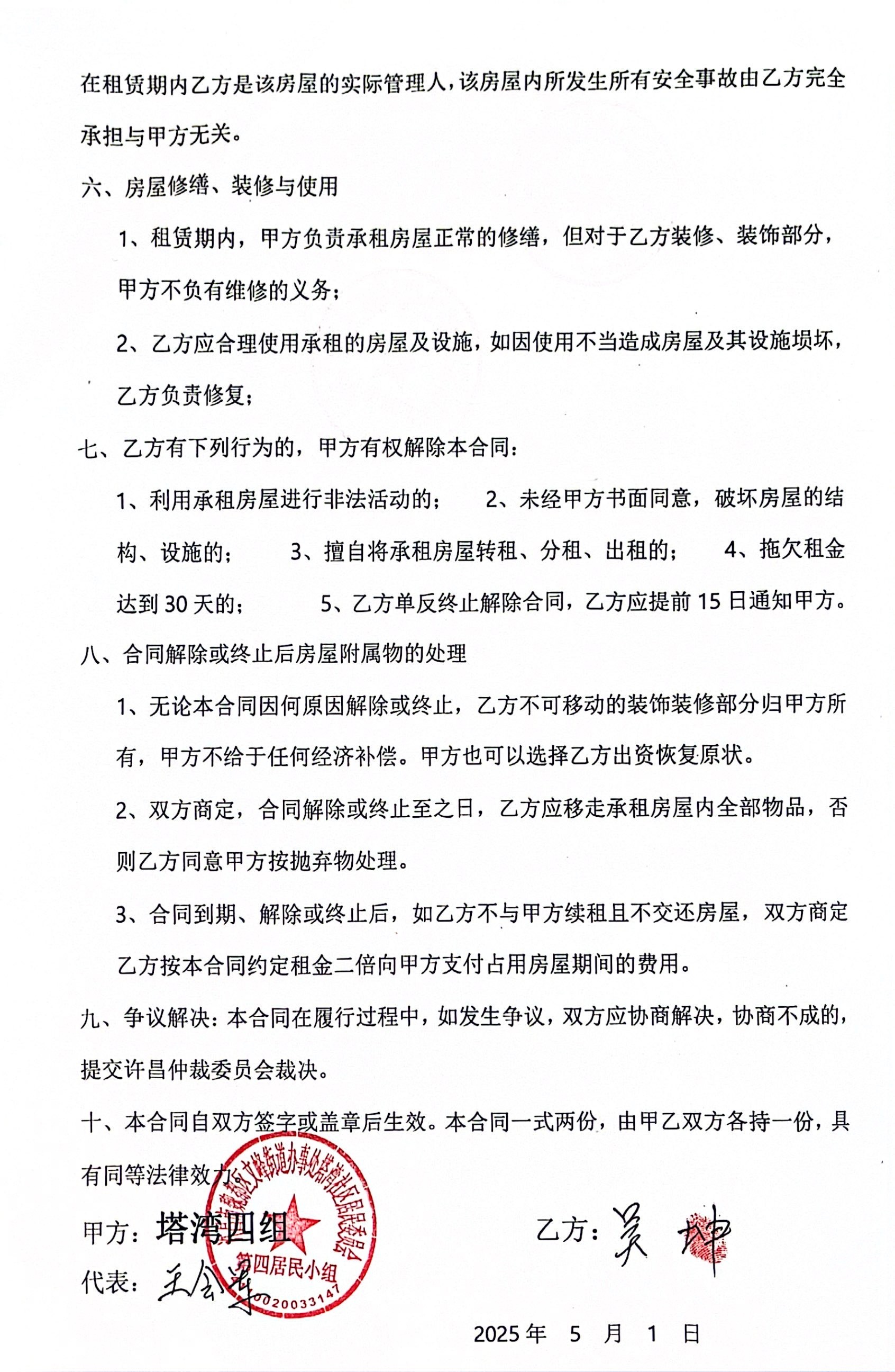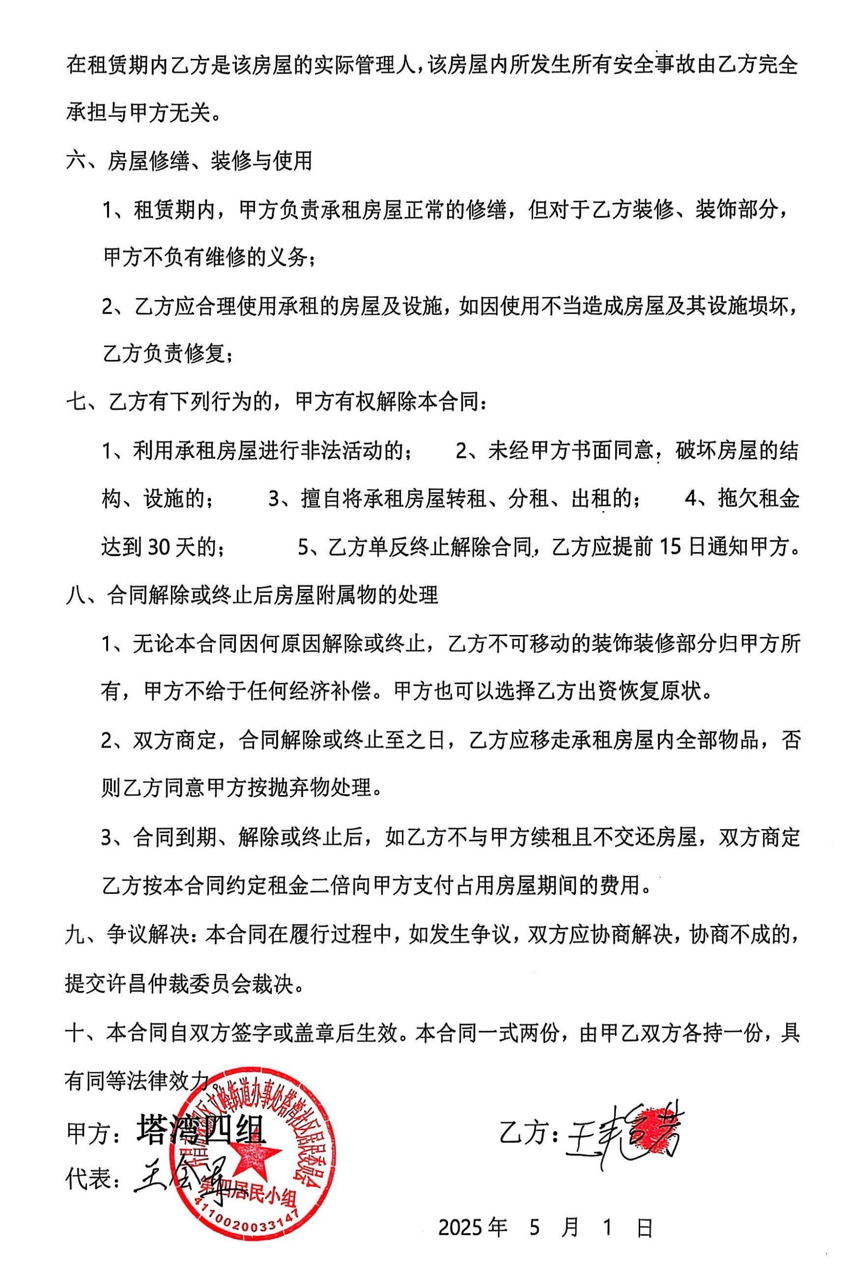 文峰办事处塔湾社区第五居民小组门面房及场院租赁协议
