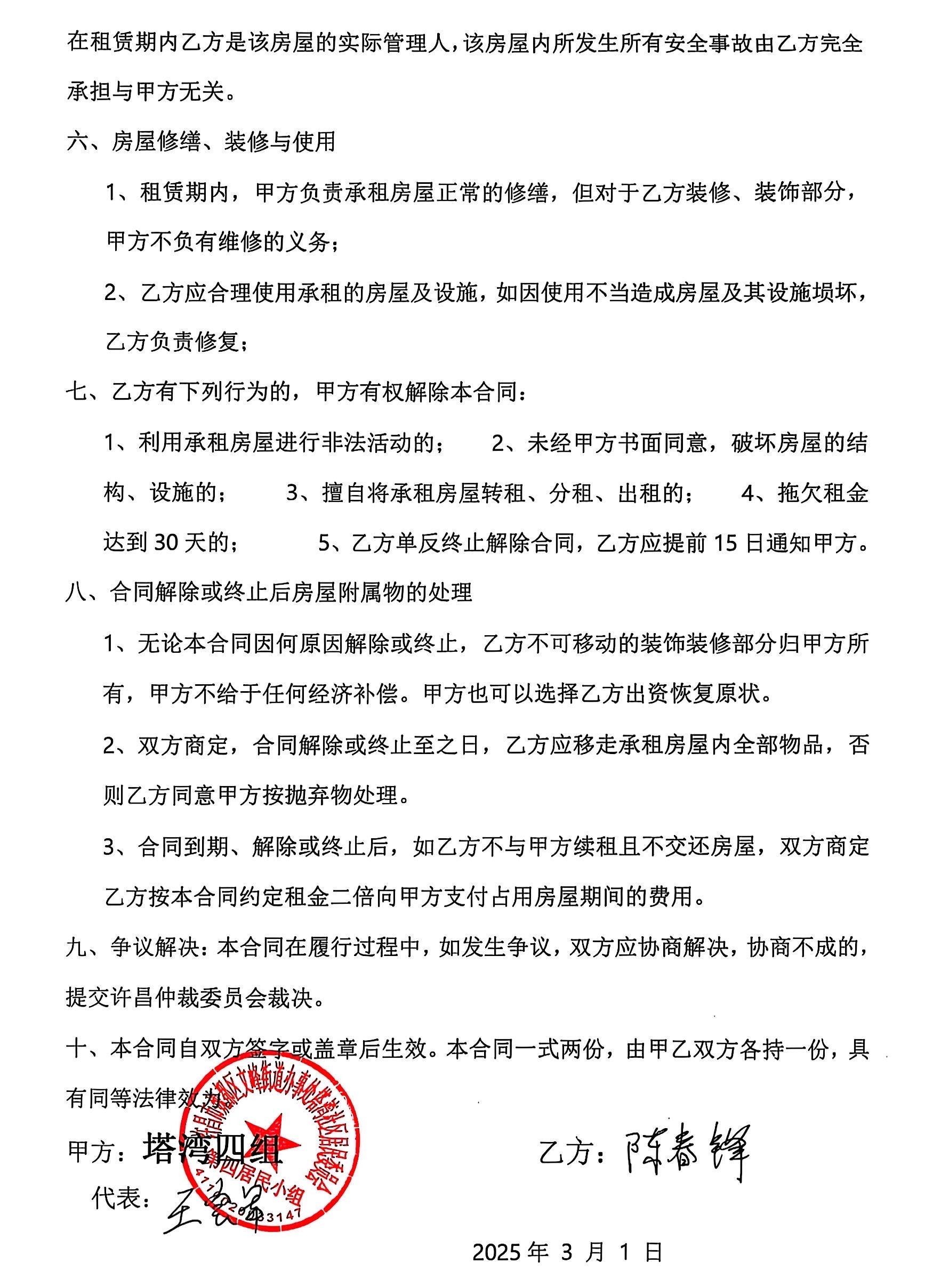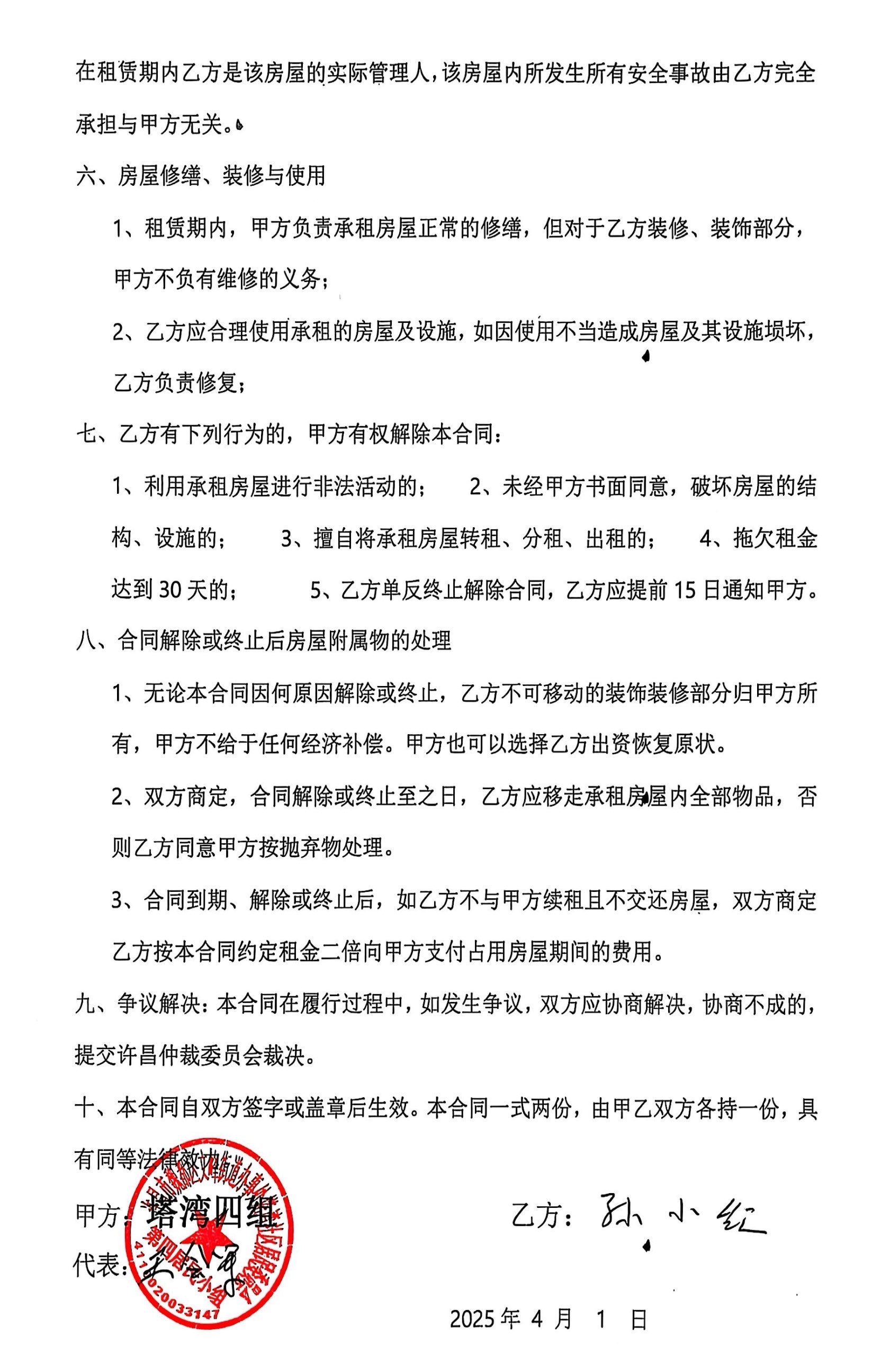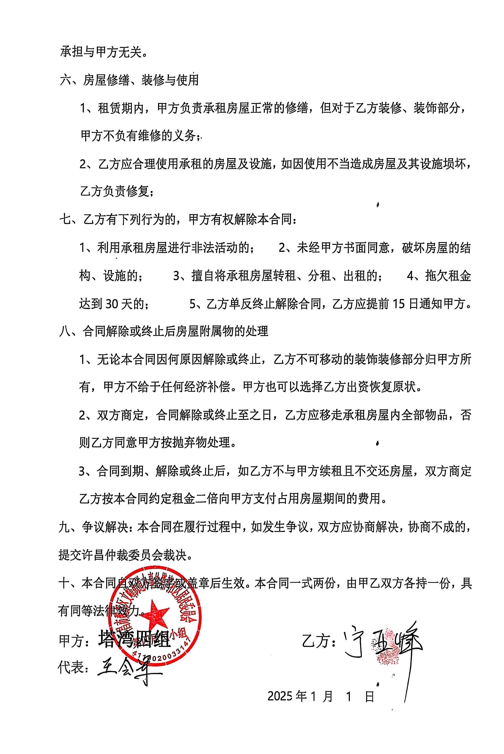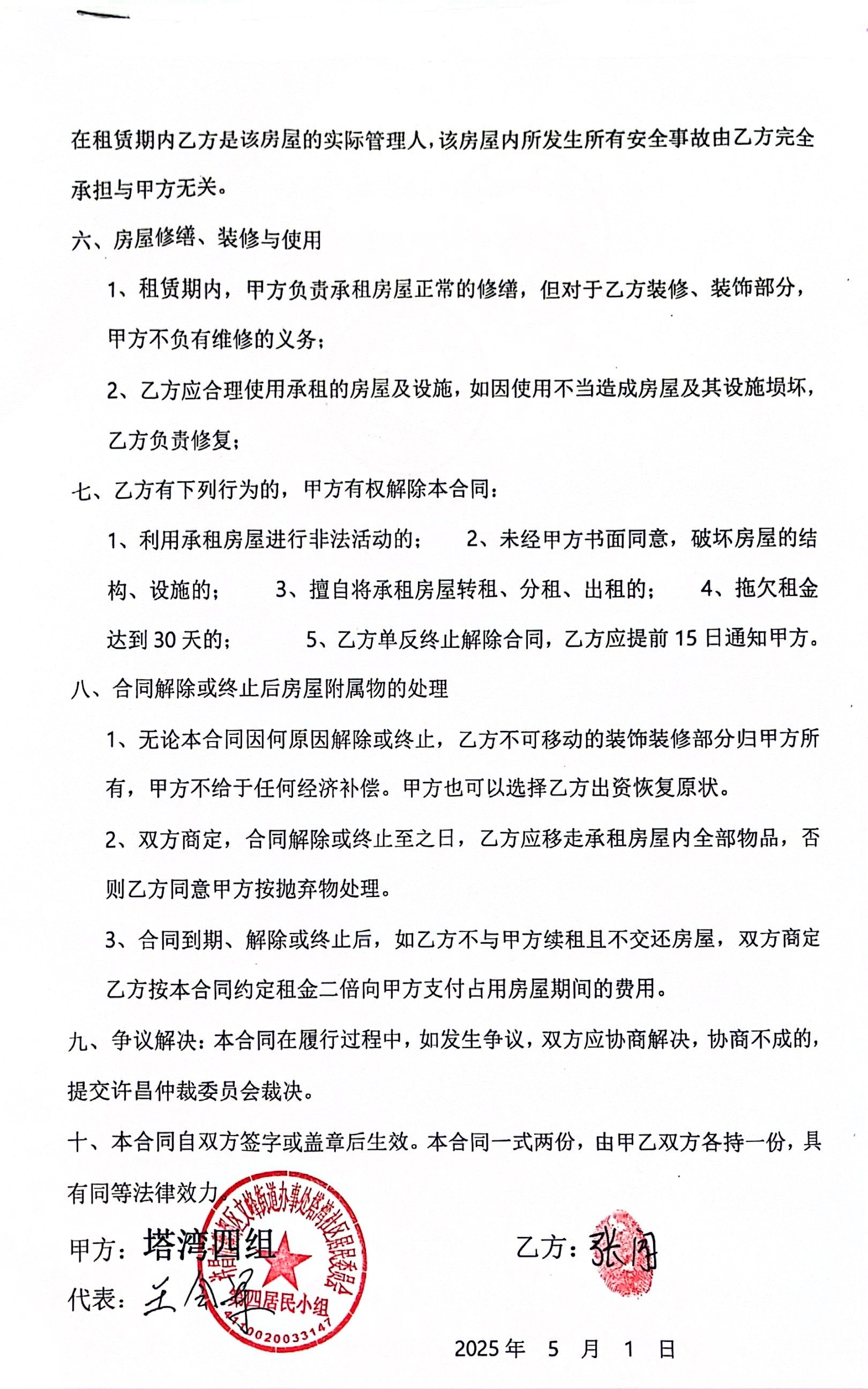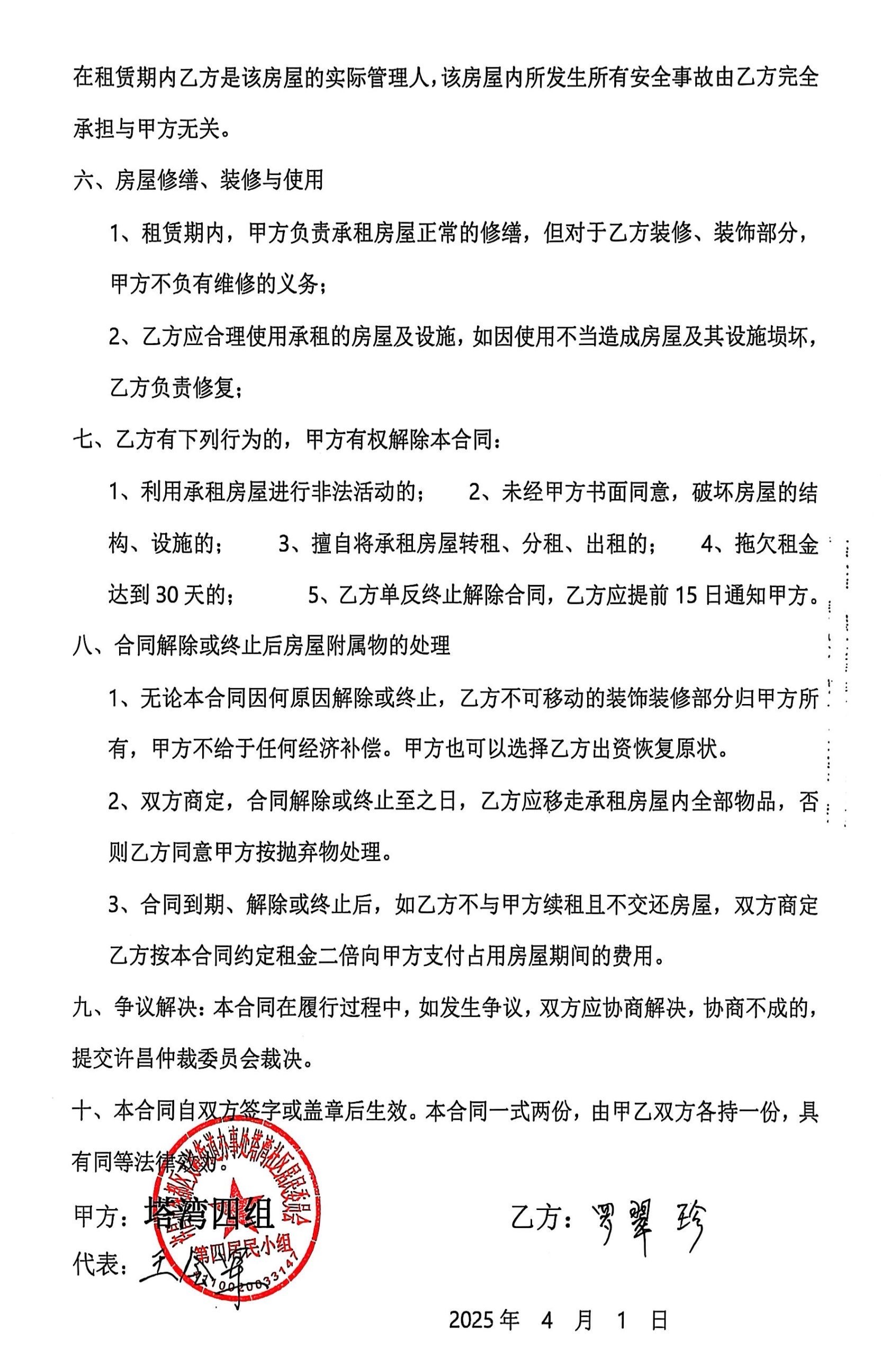 文峰办事处塔湾社区第五居民小组门面房及场院租赁协议
