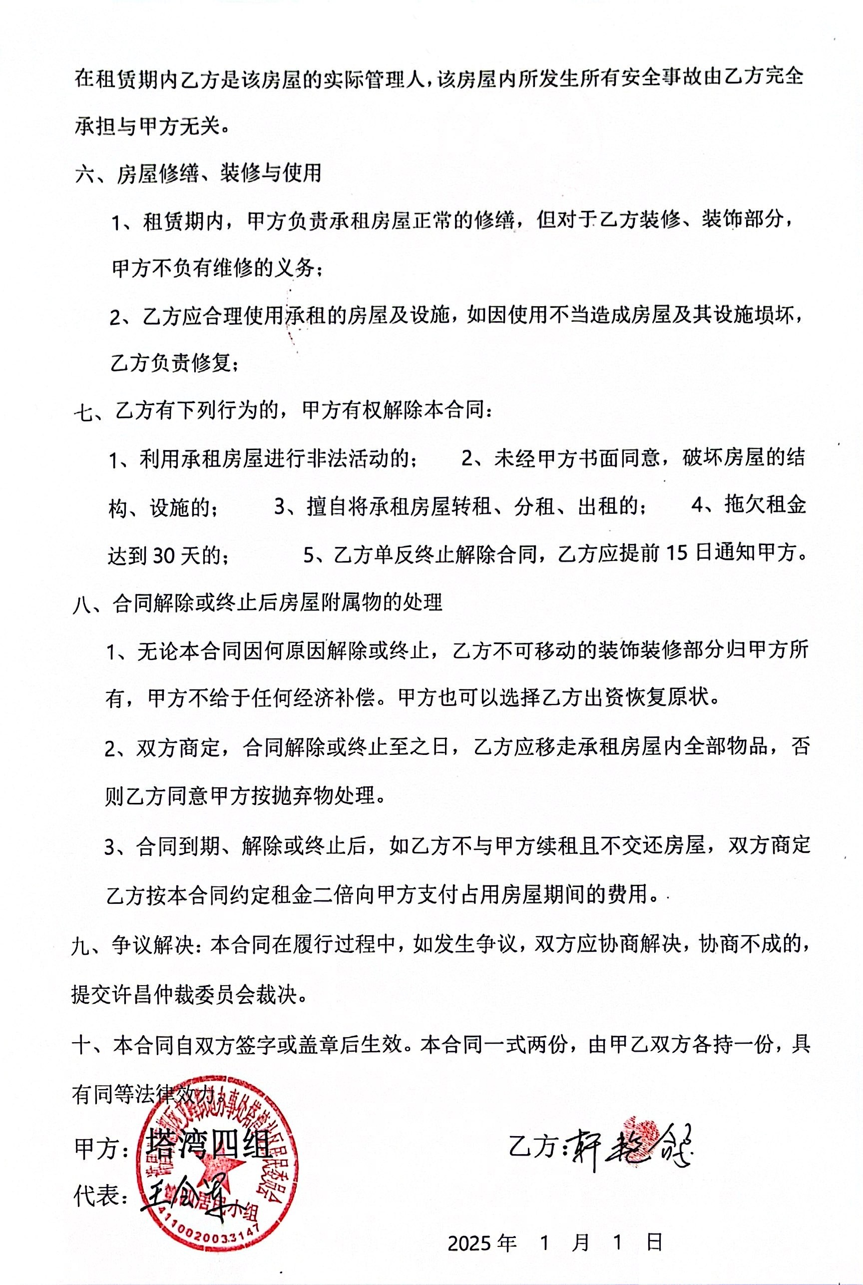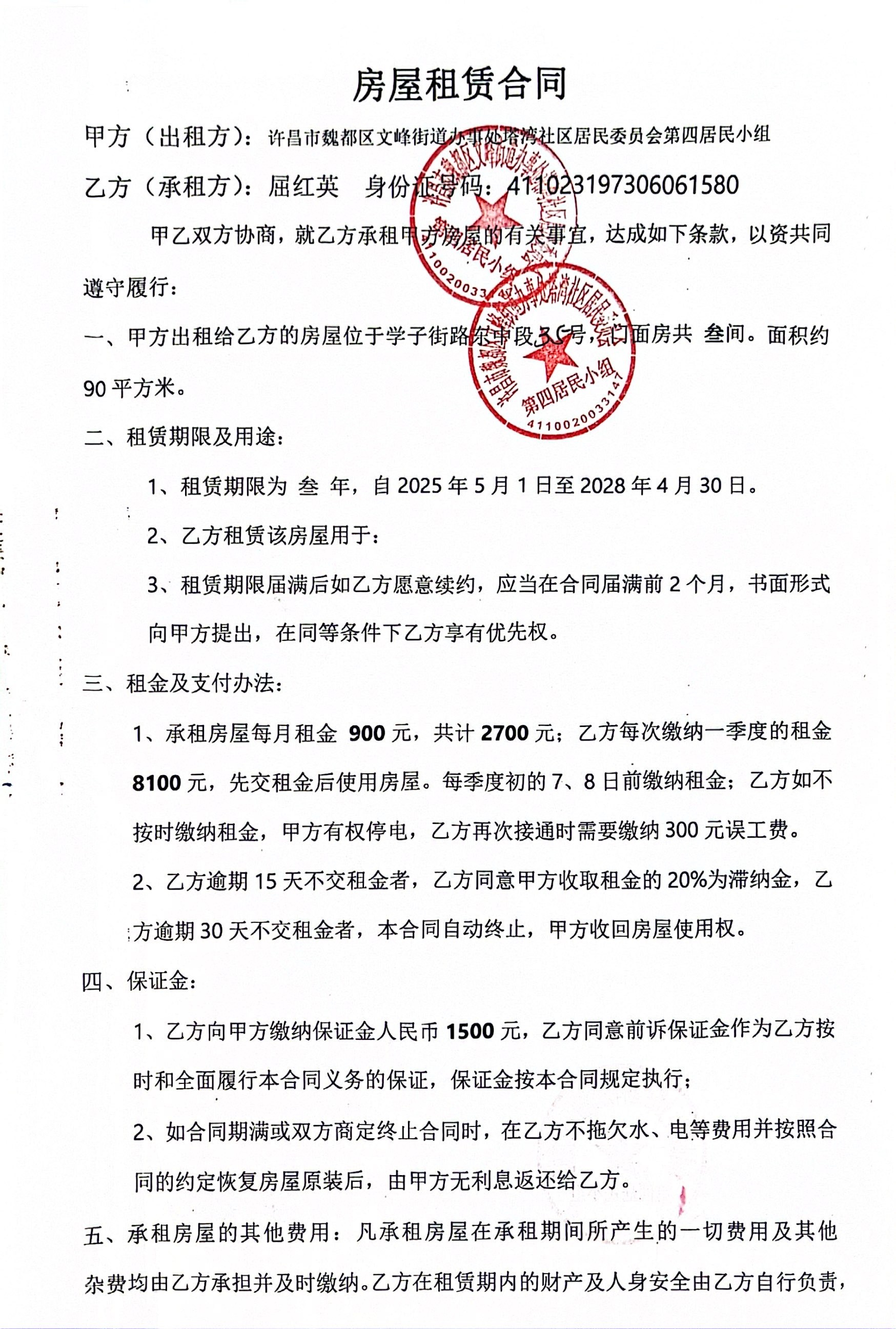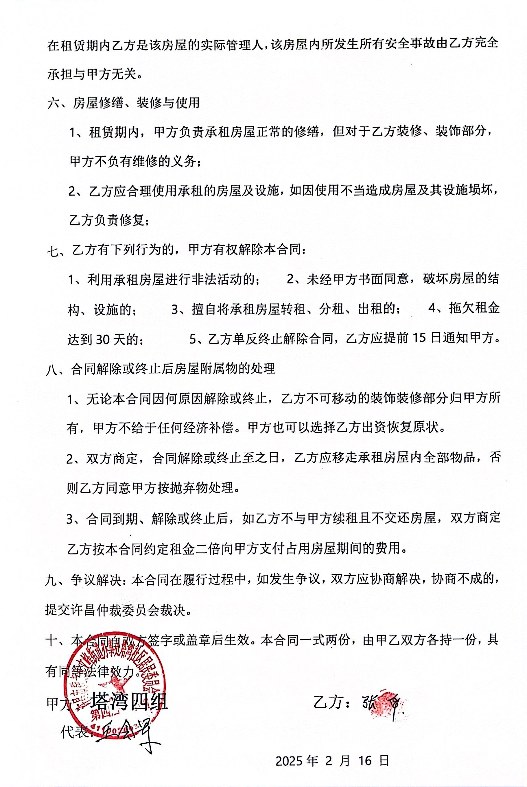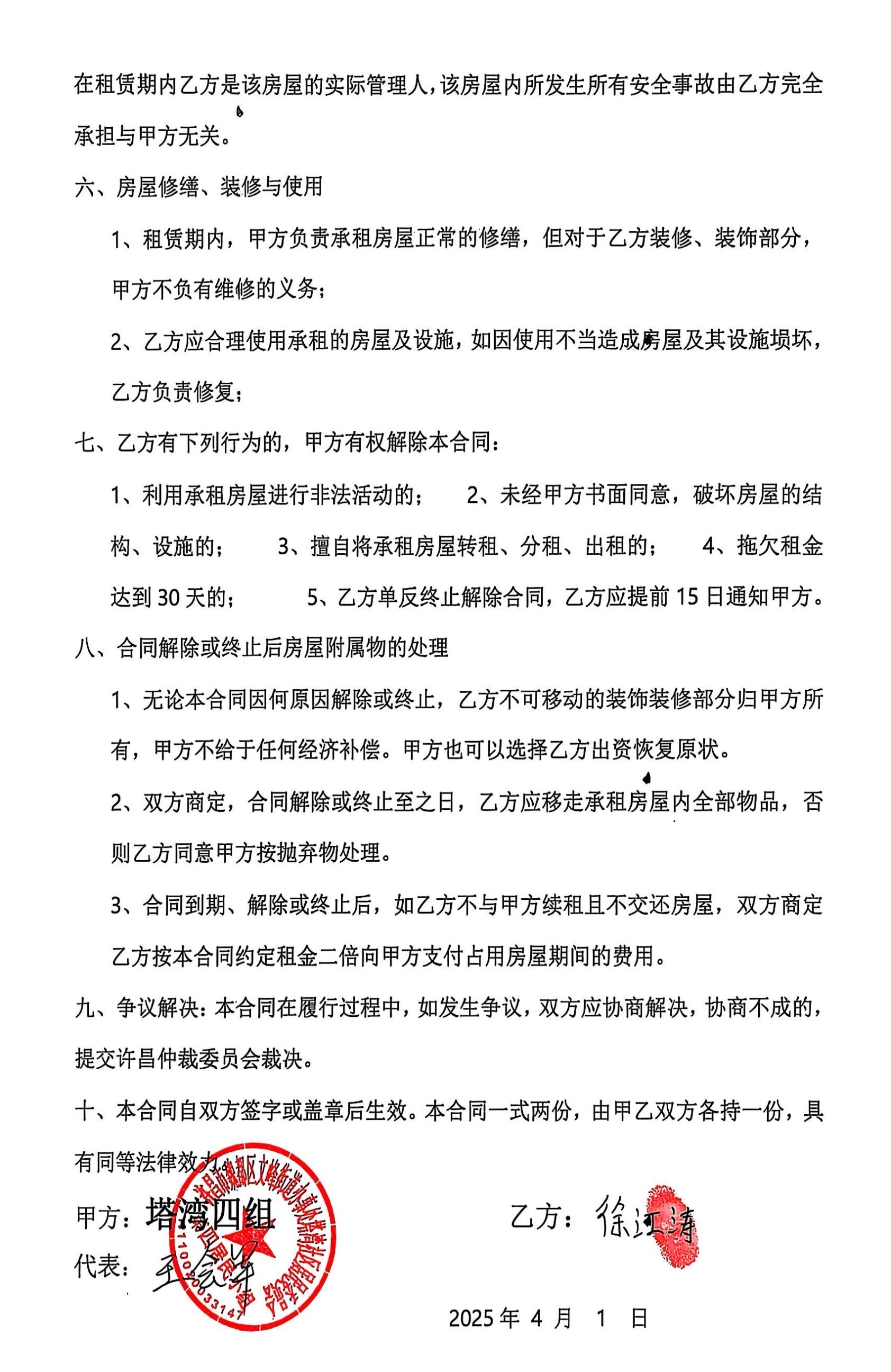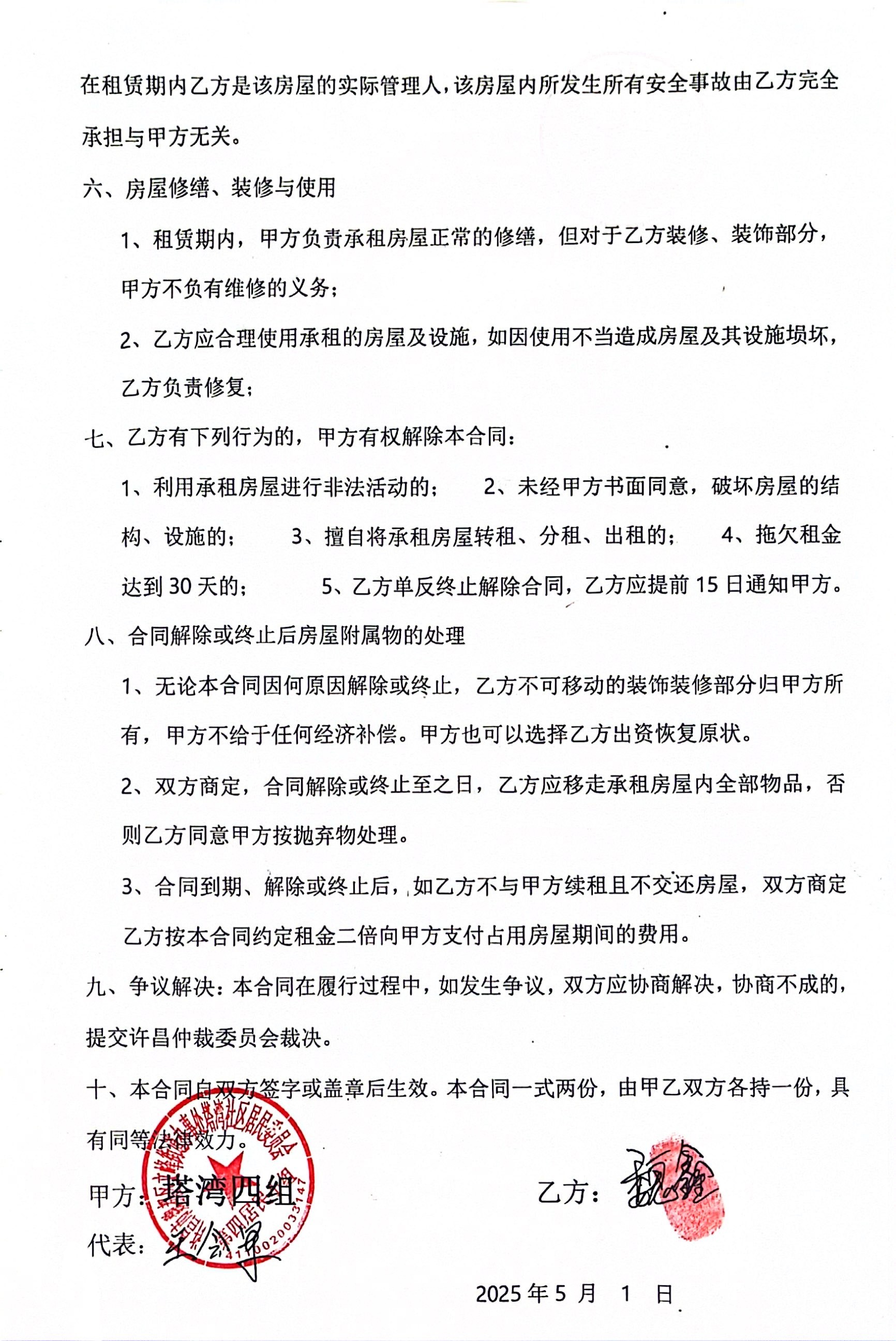文峰办事处塔湾社区第五居民小组门面房及场院租赁协议