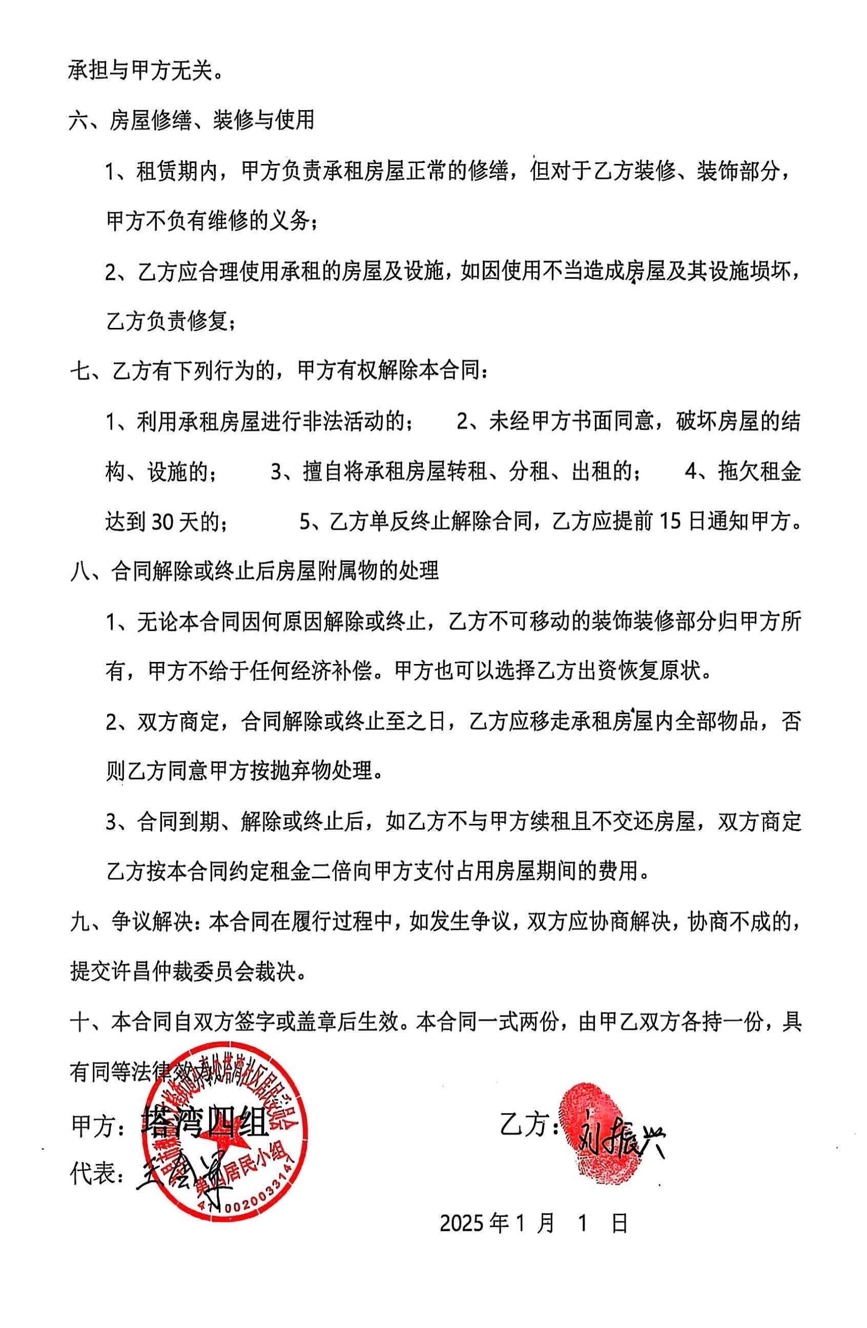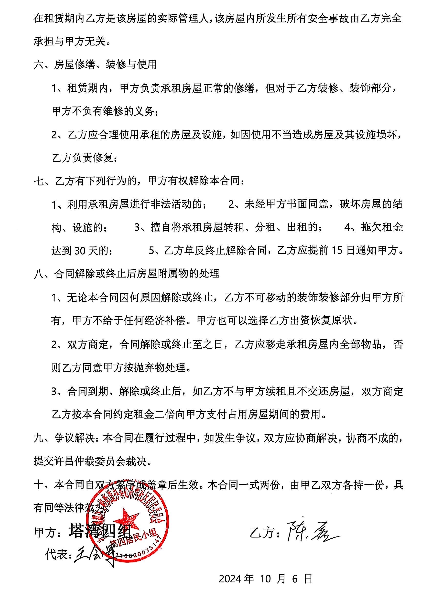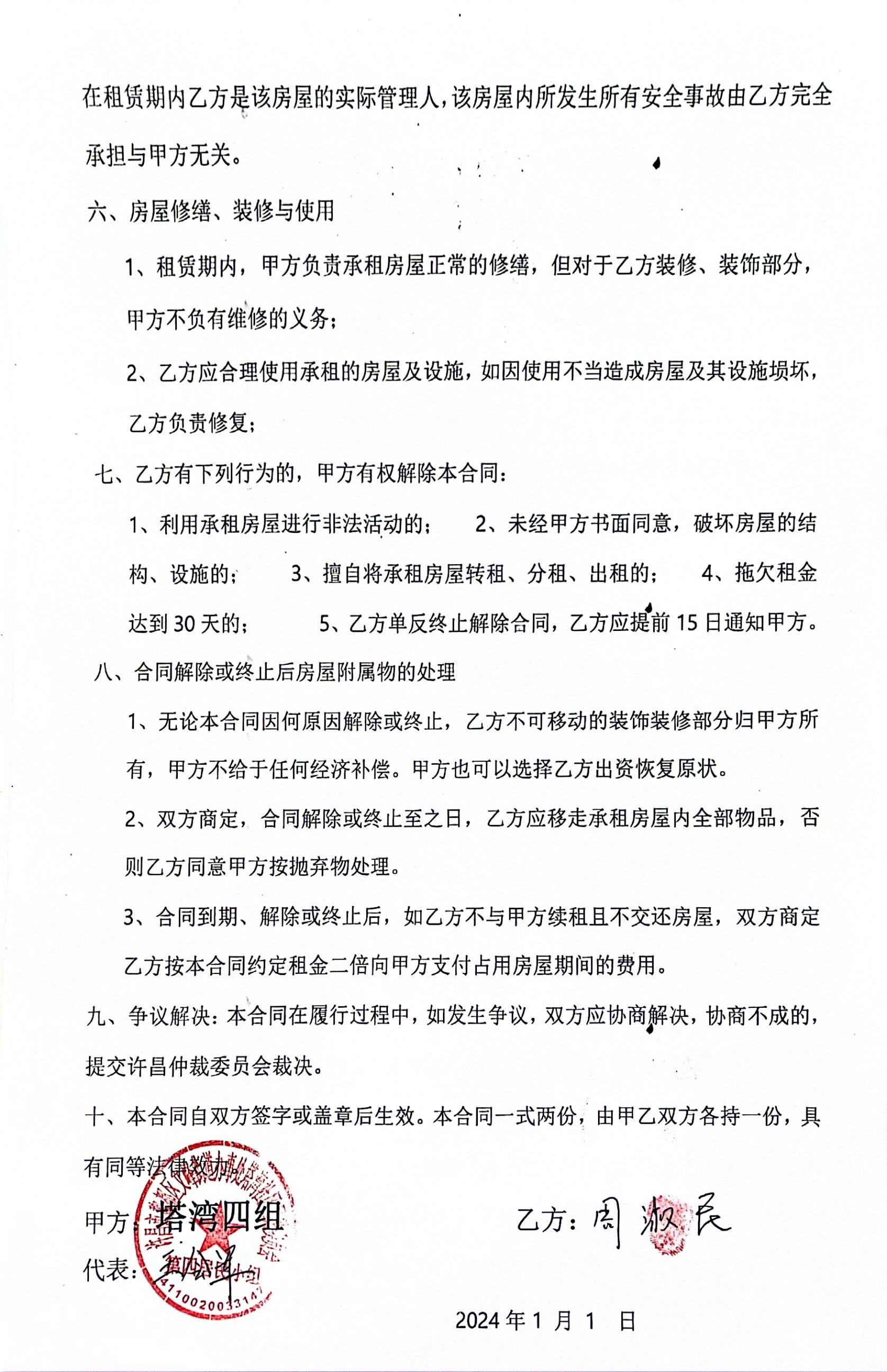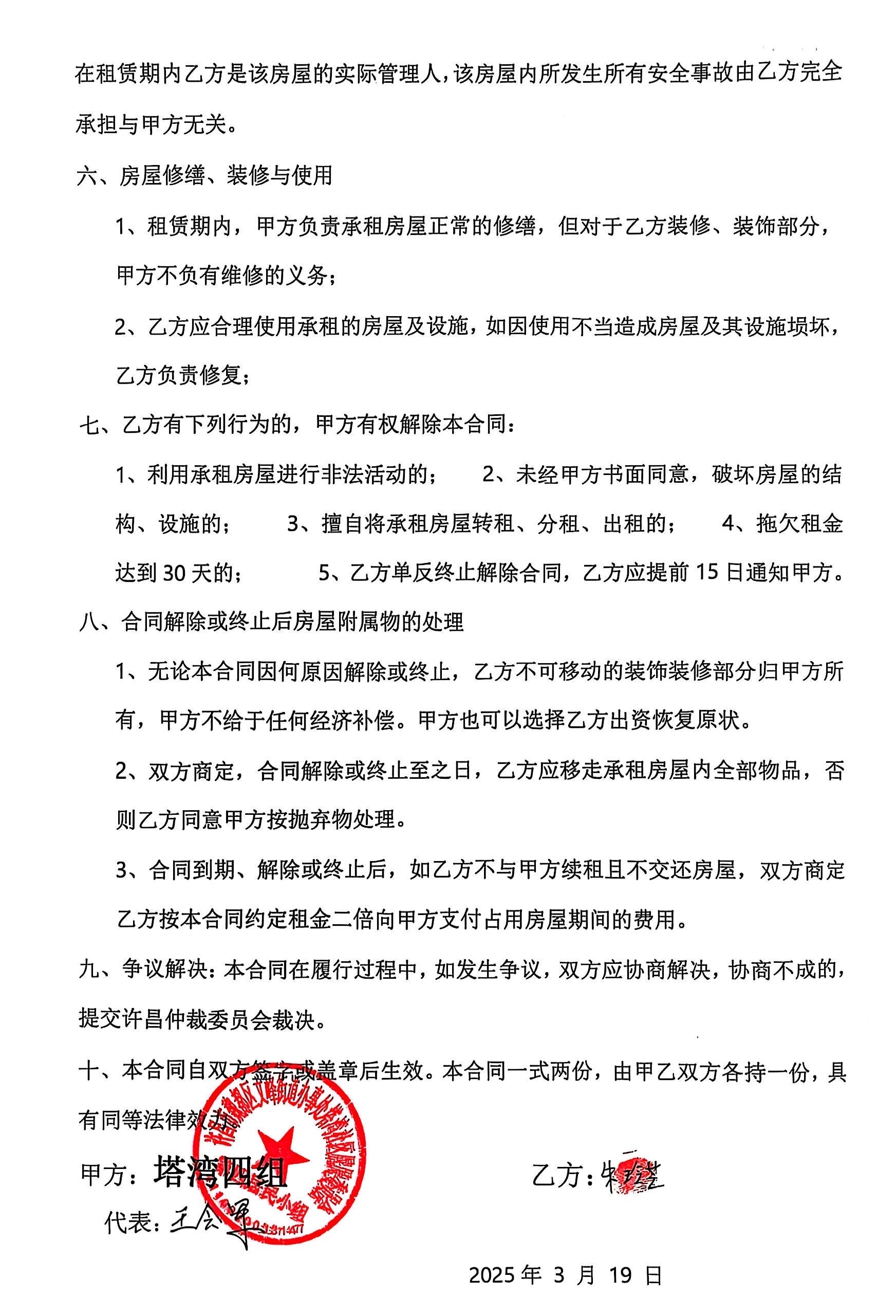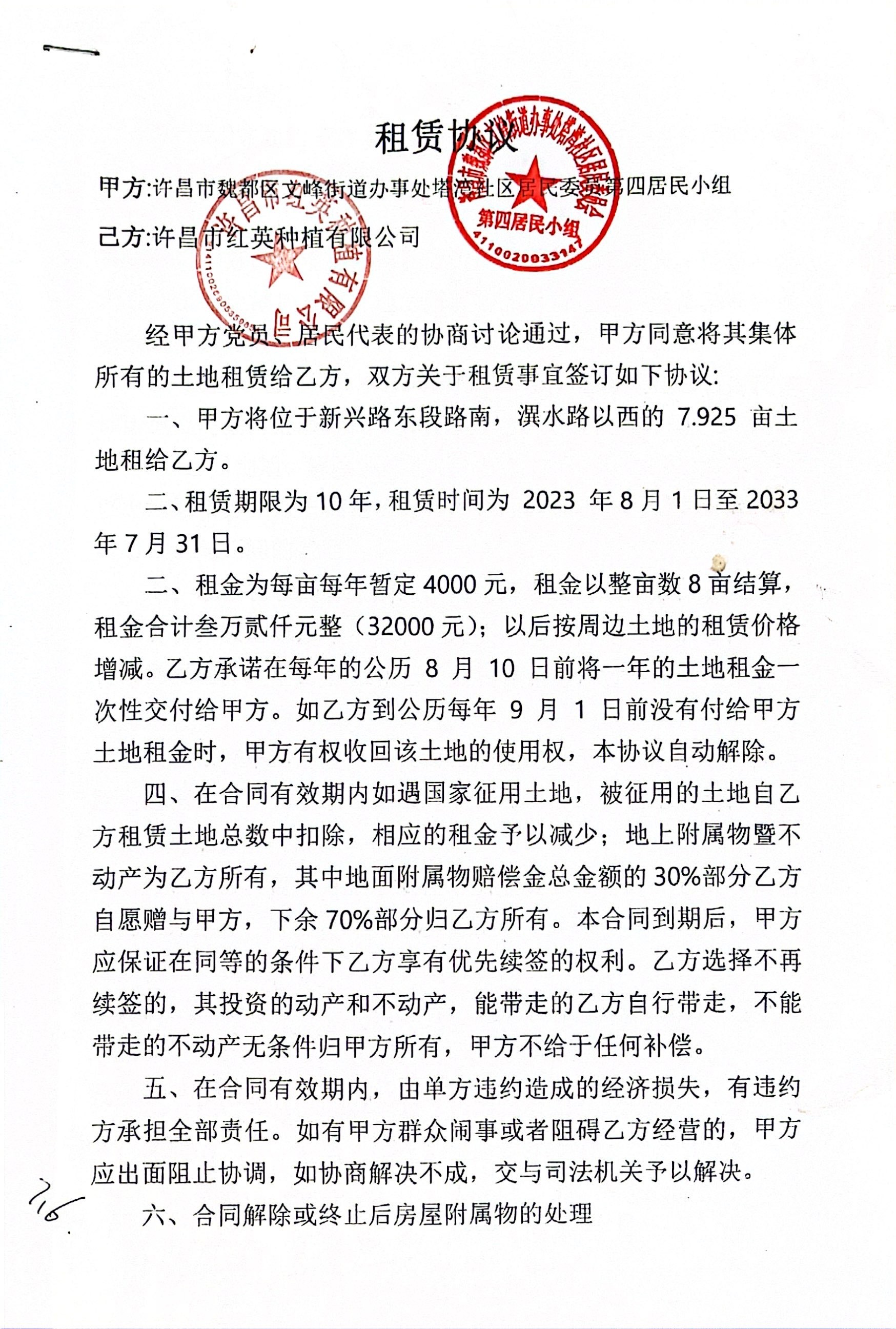 文峰办事处塔湾社区第四居民小组门面房及场院租赁协议