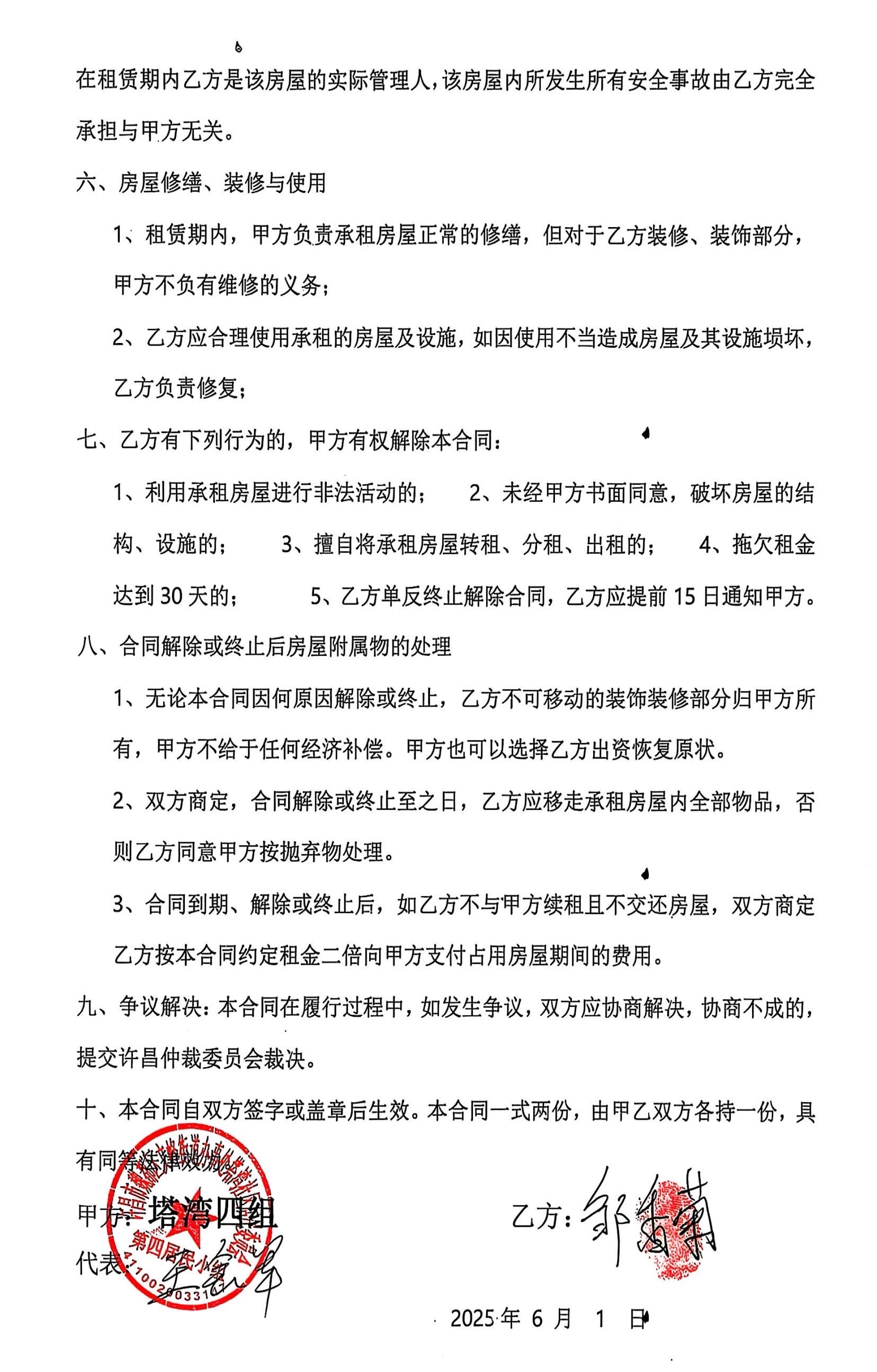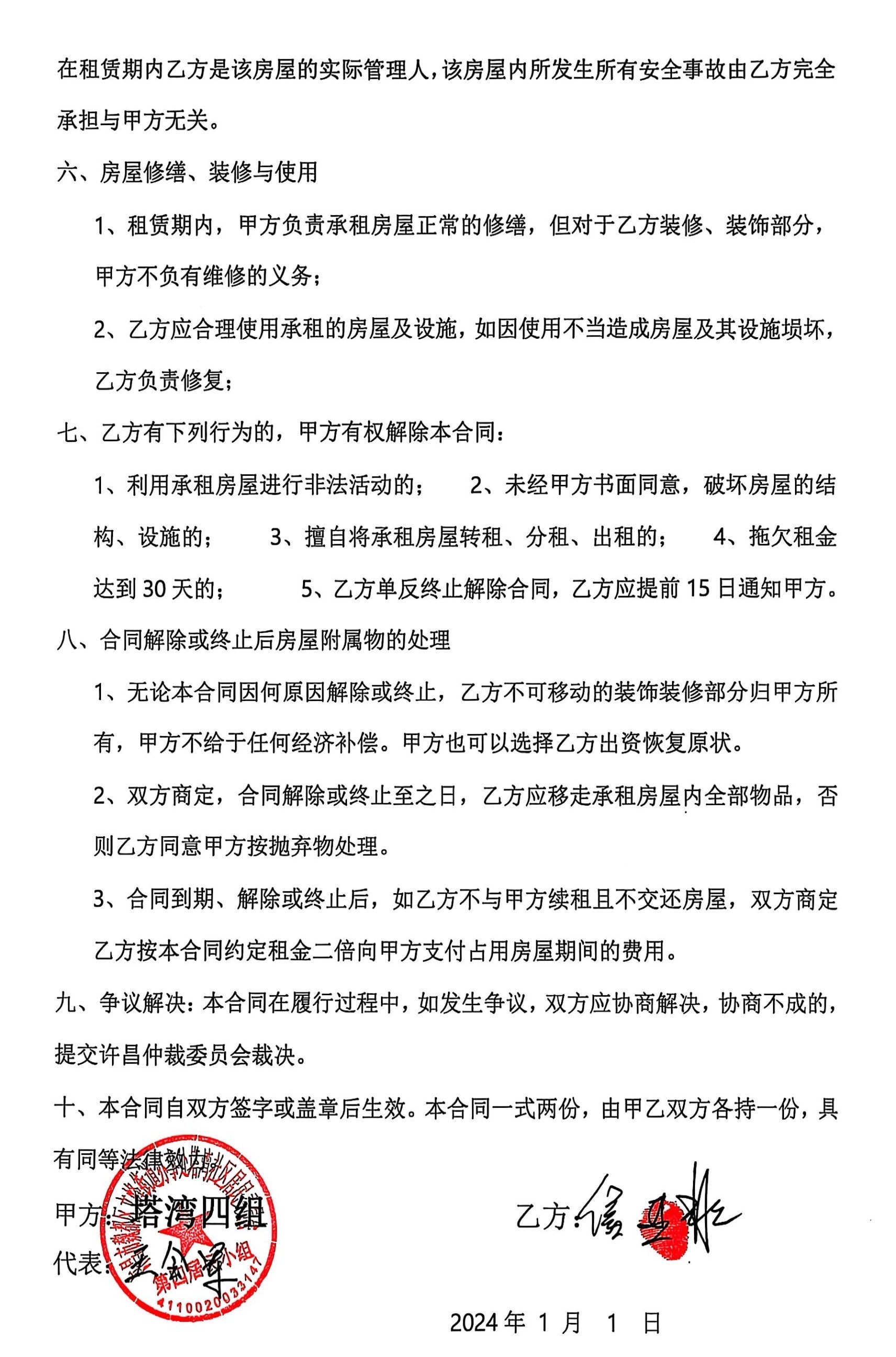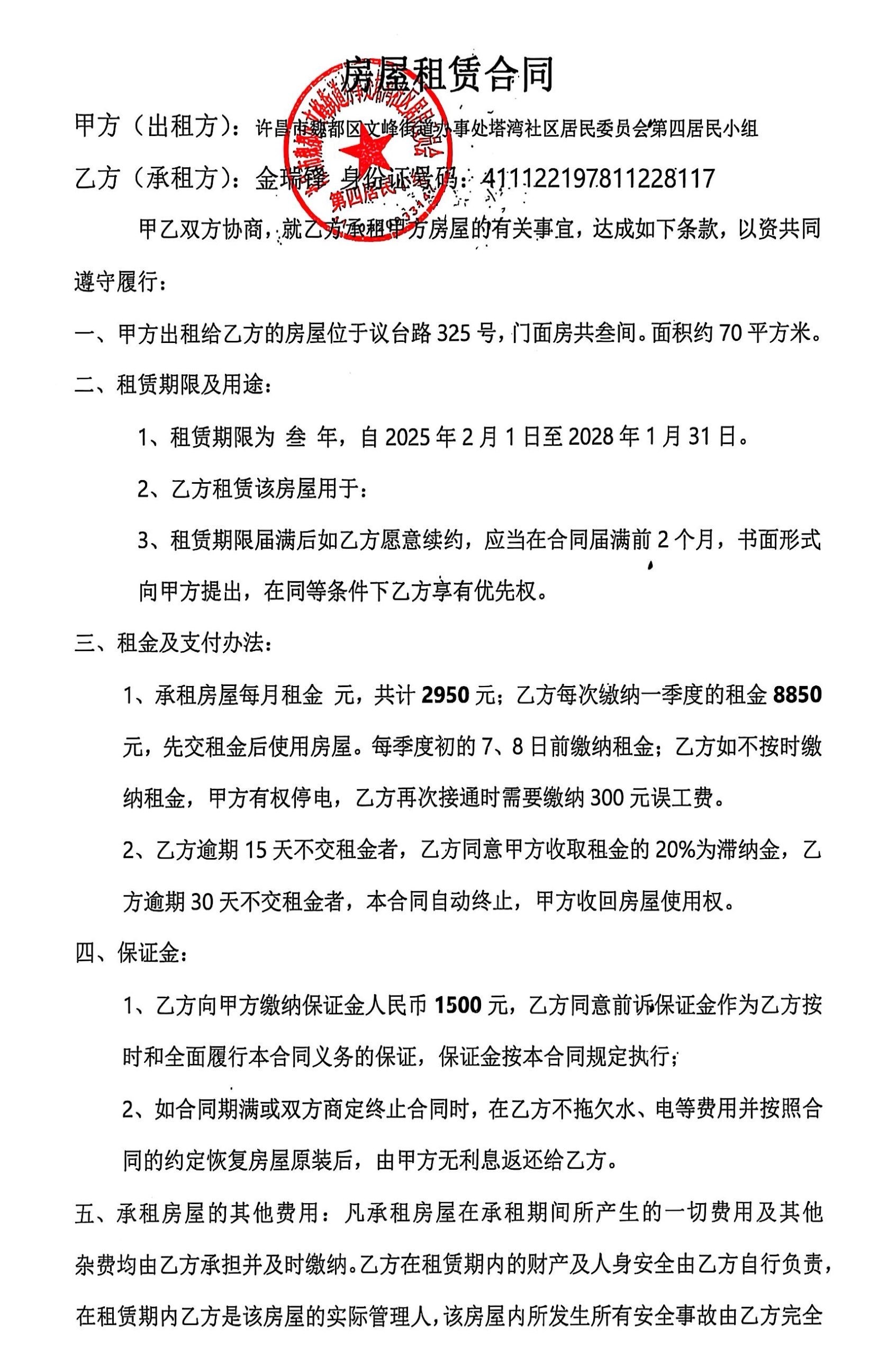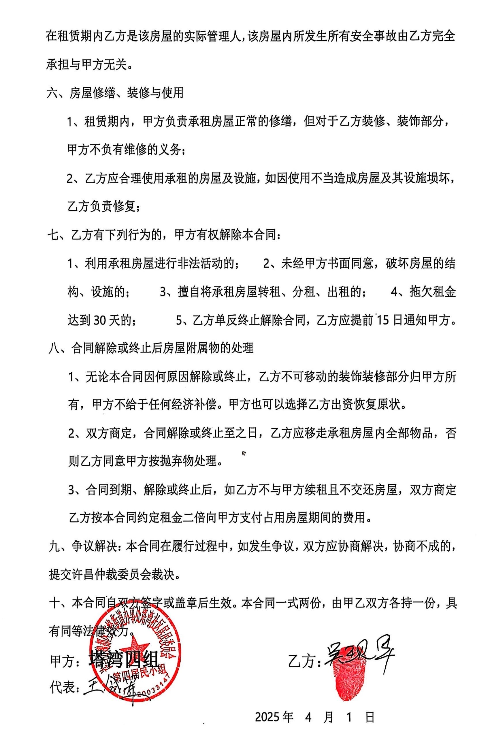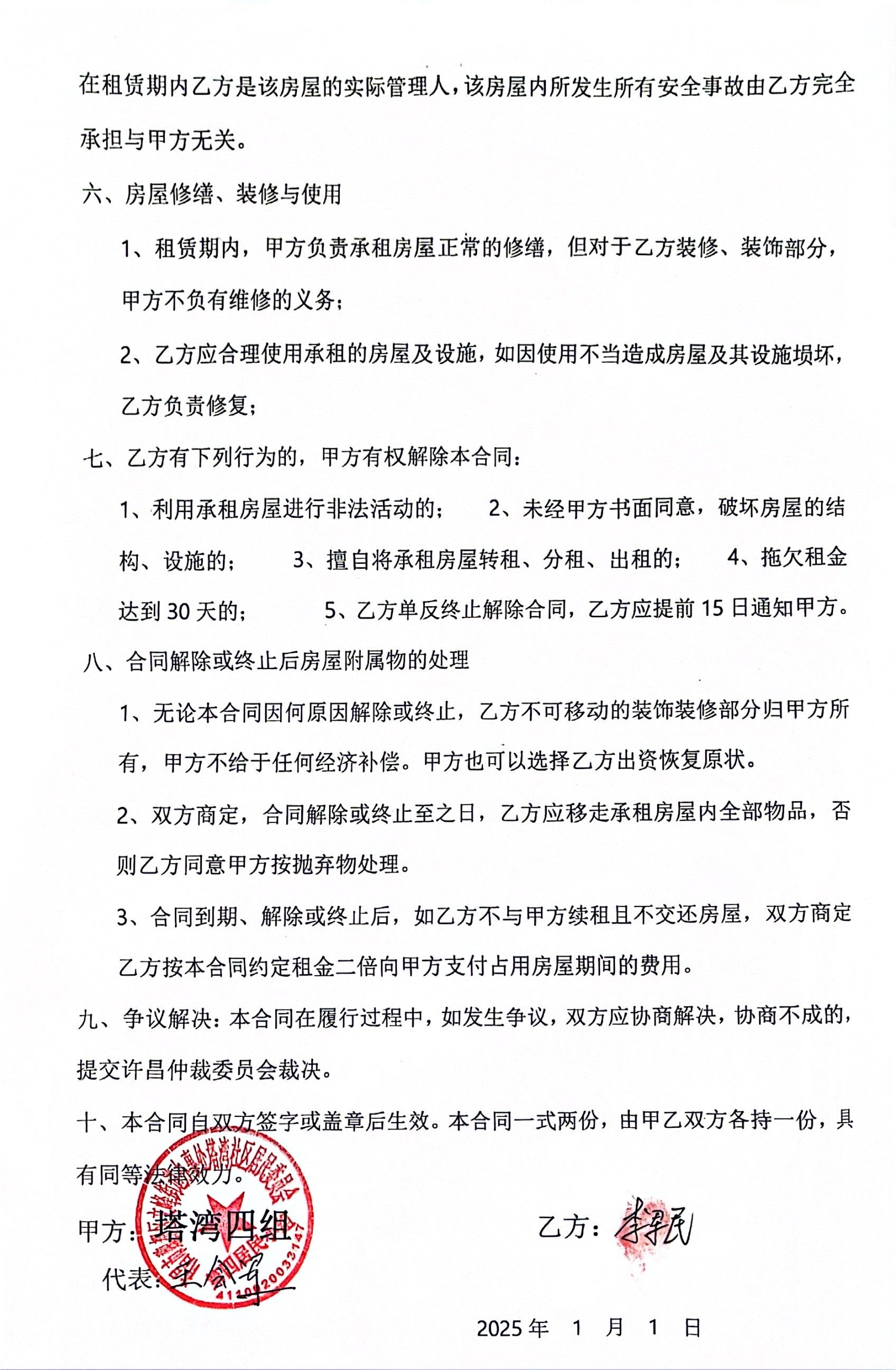 文峰办事处塔湾社区第四居民小组门面房及场院租赁协议