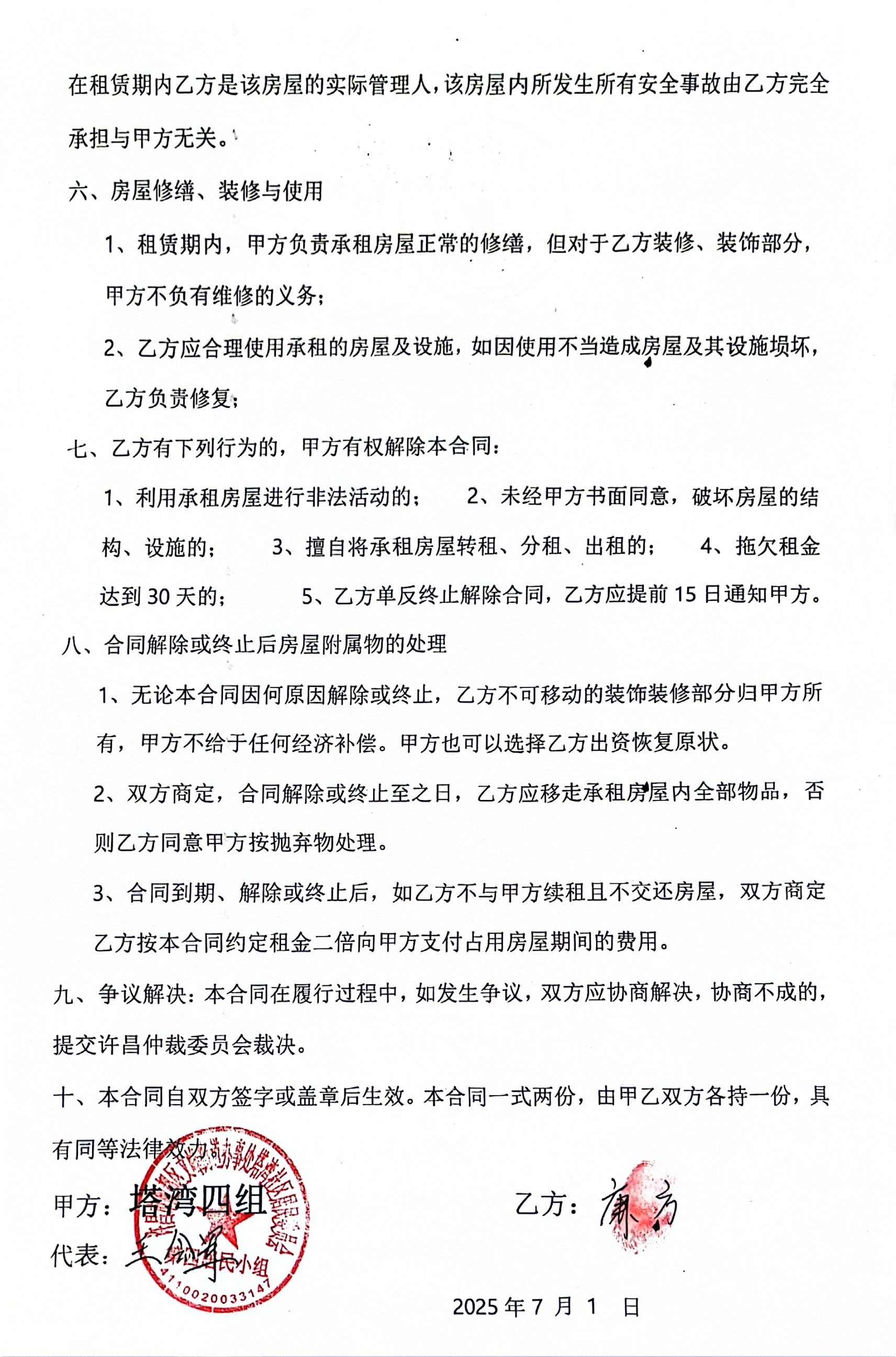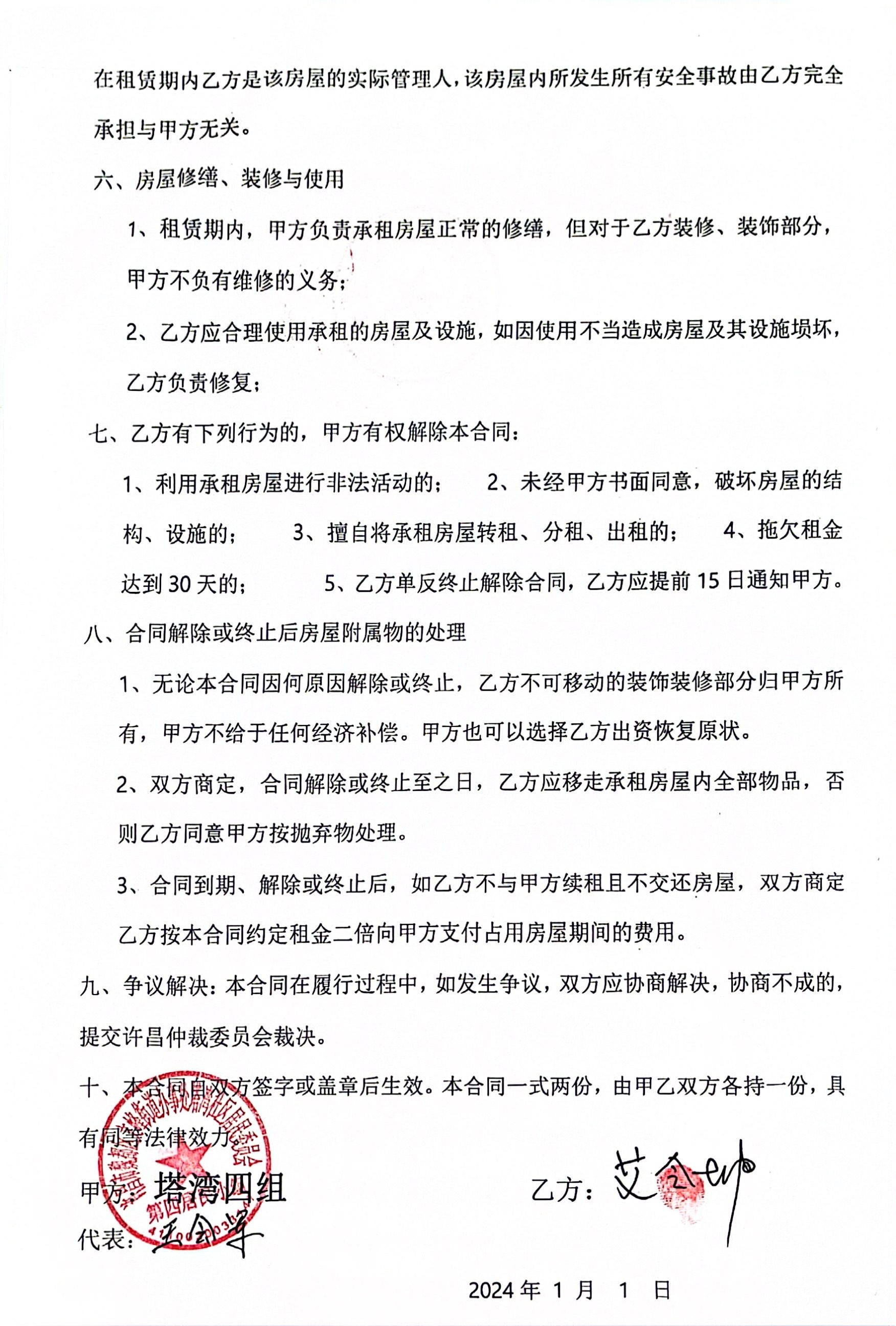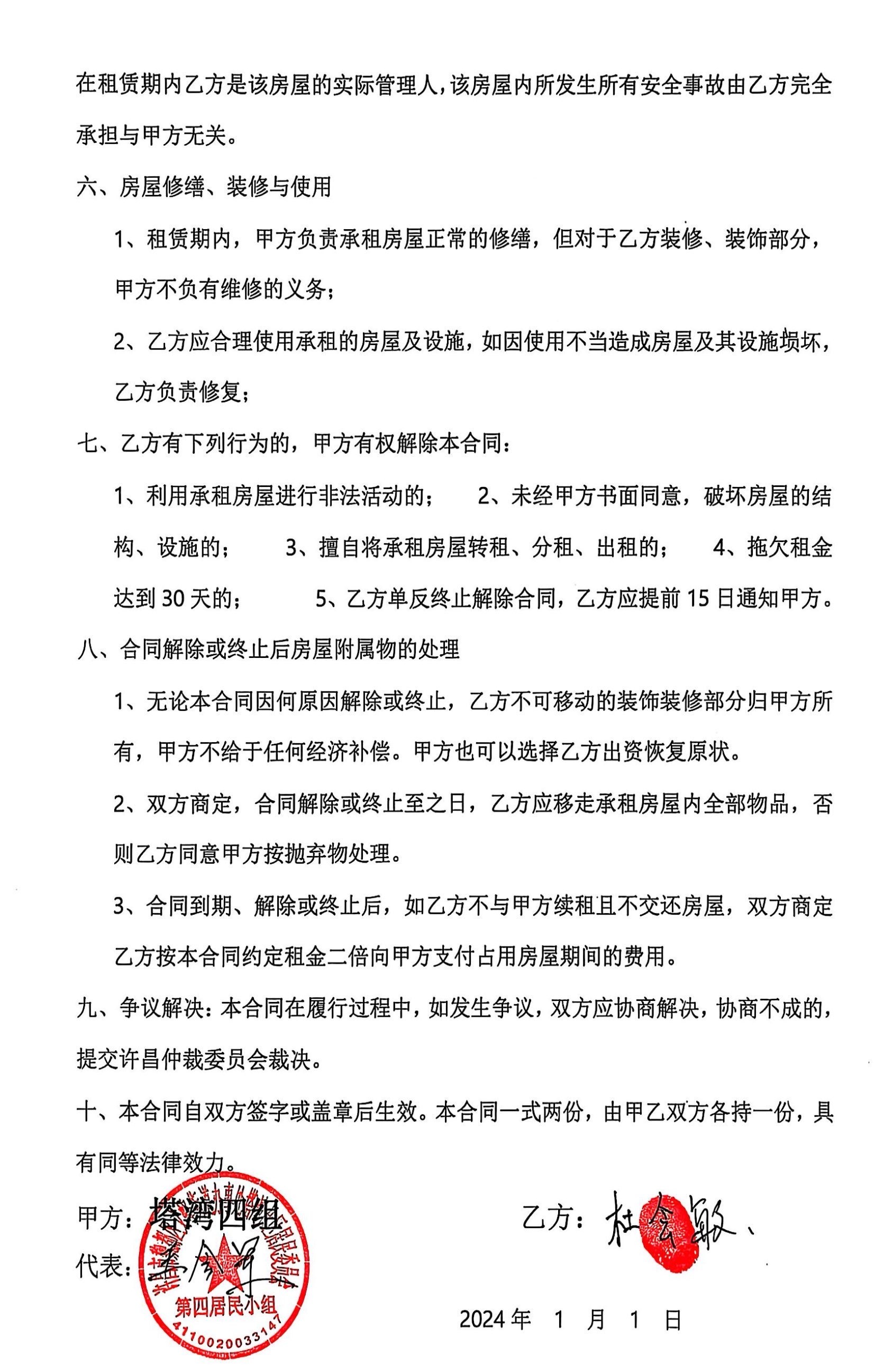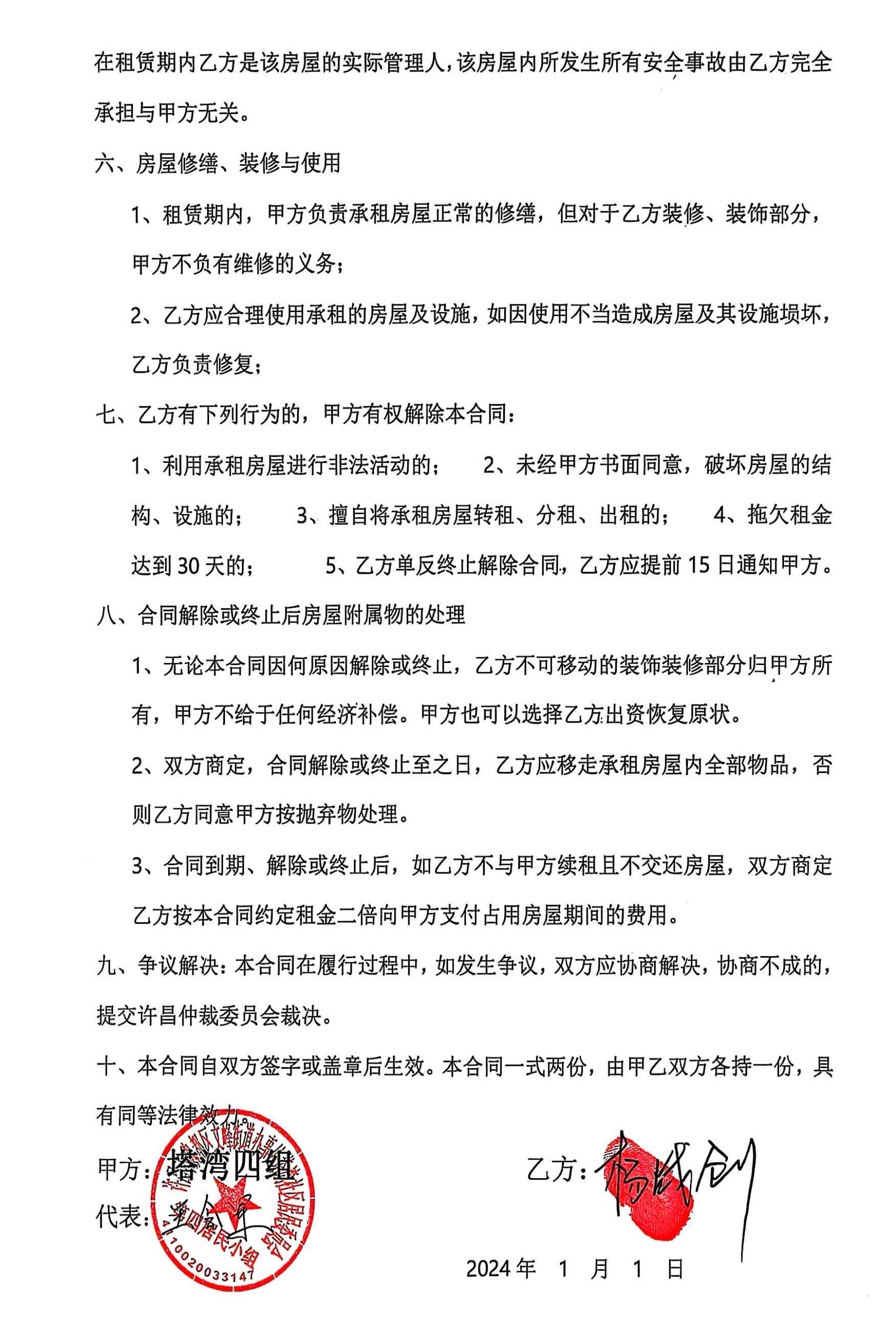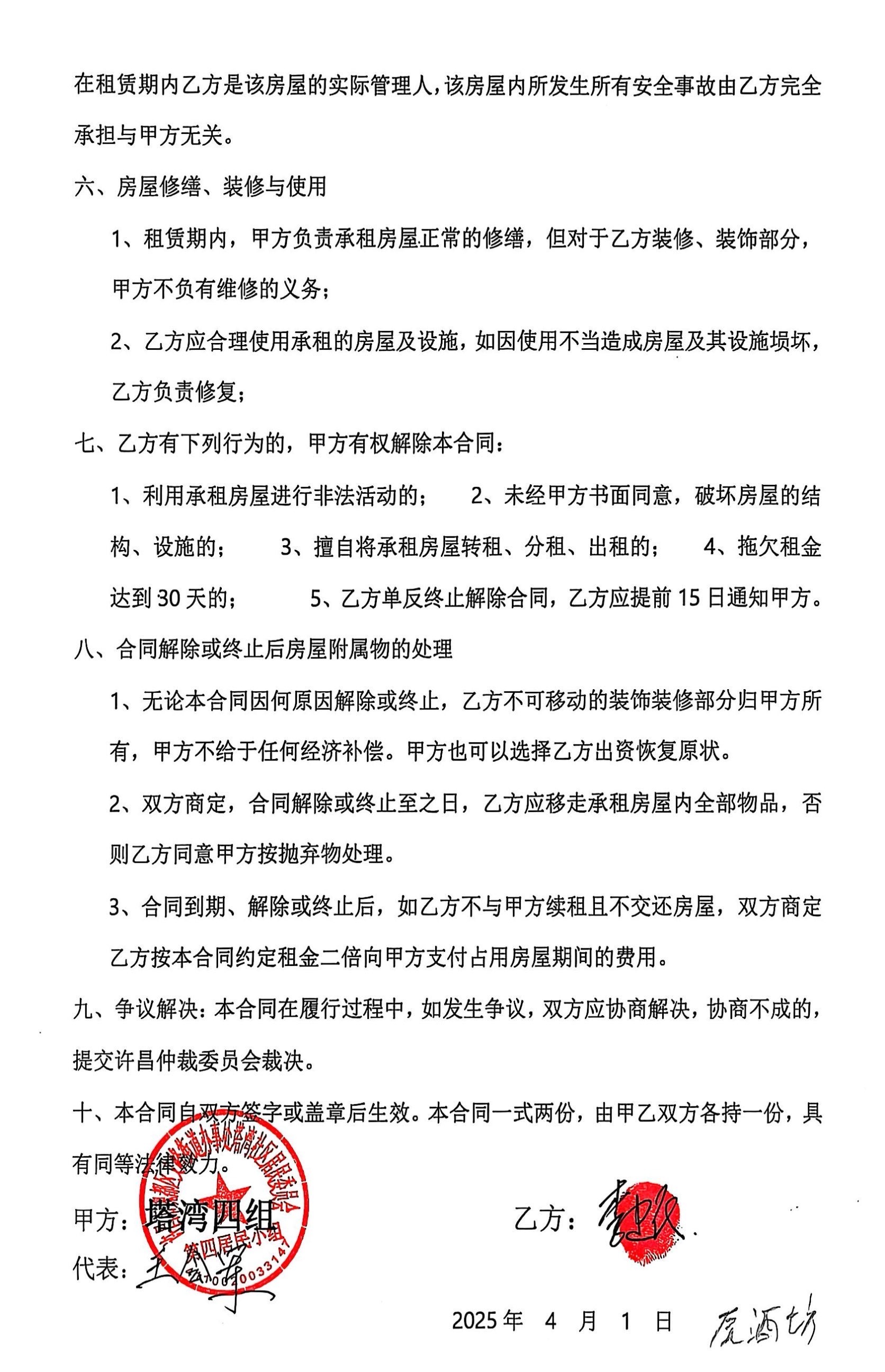 文峰办事处塔湾社区第四居民小组门面房及场院租赁协议