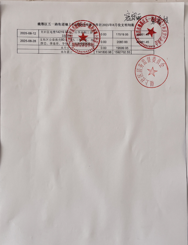 魏北办事处郭楼社区第三季度财务公开