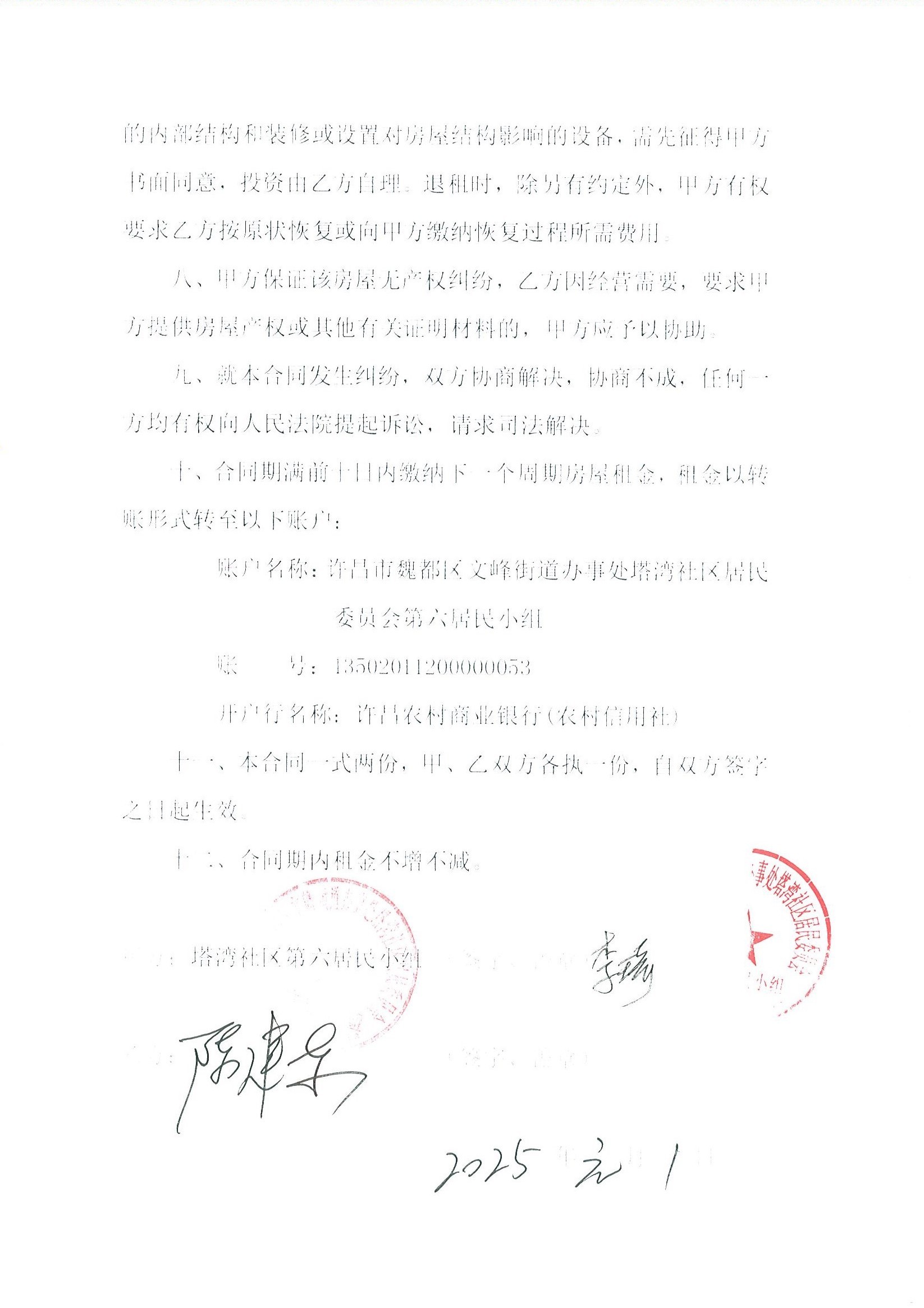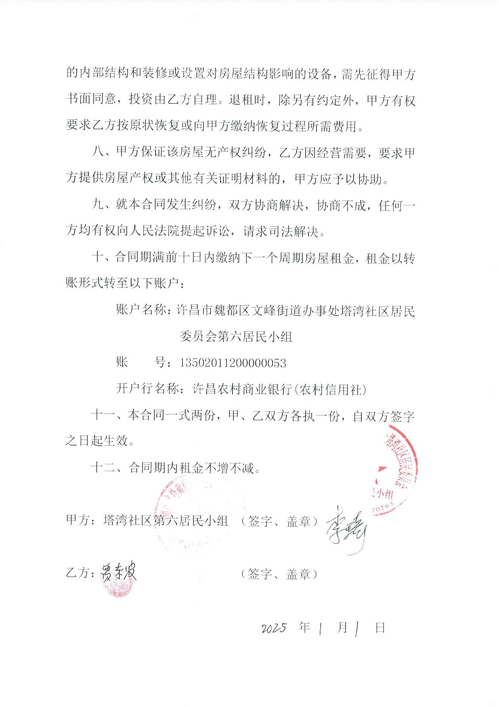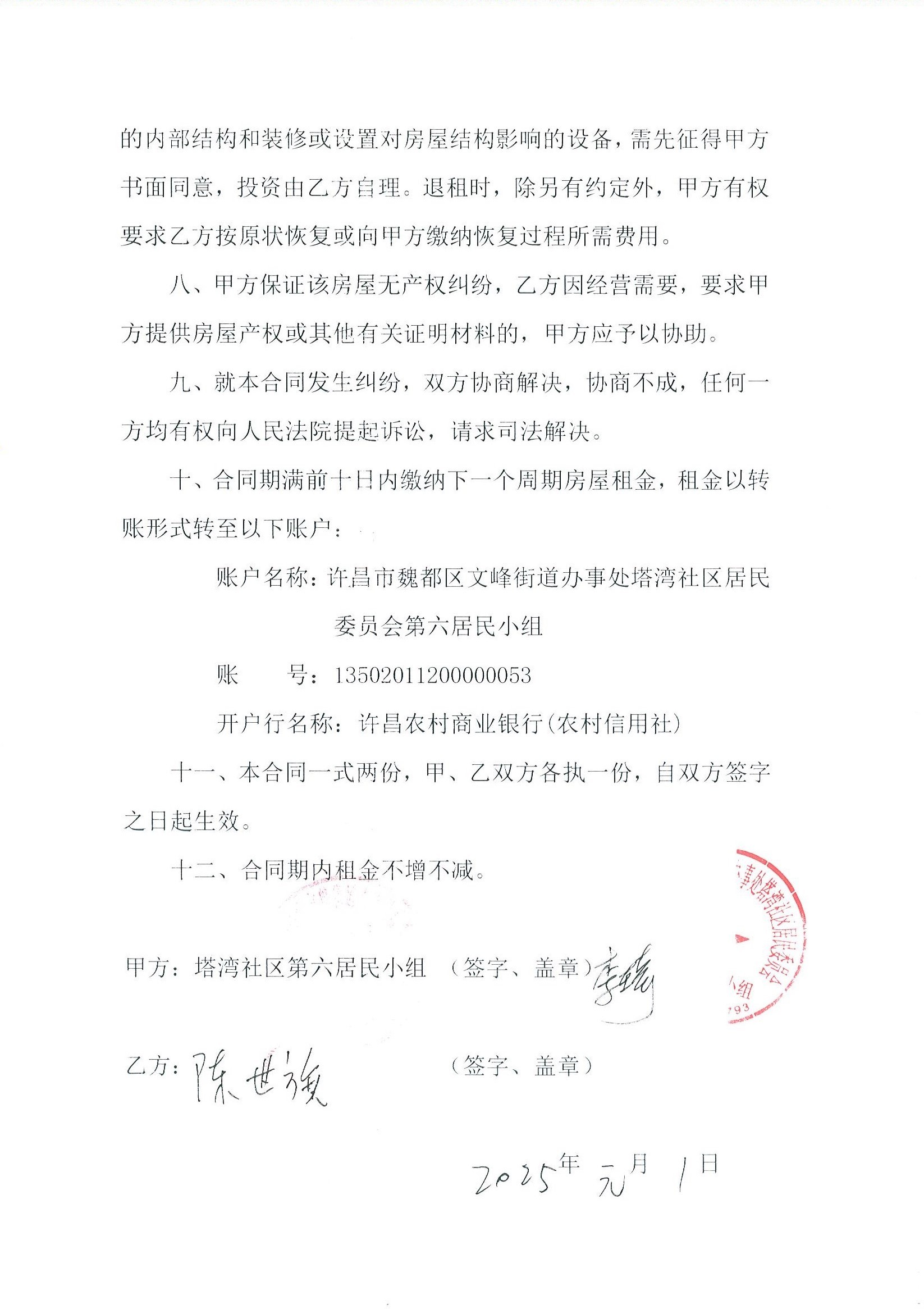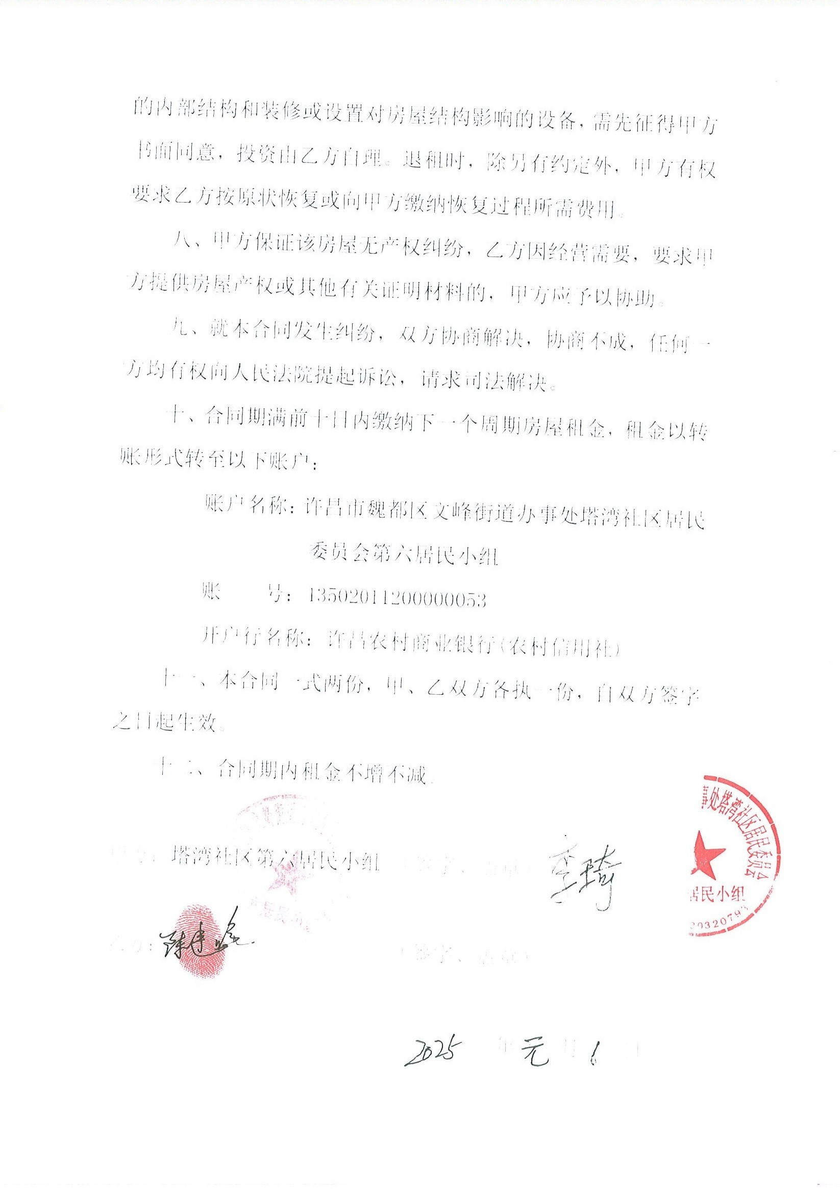 文峰办事处塔湾社区第七居民小组门面房及场院租赁协议