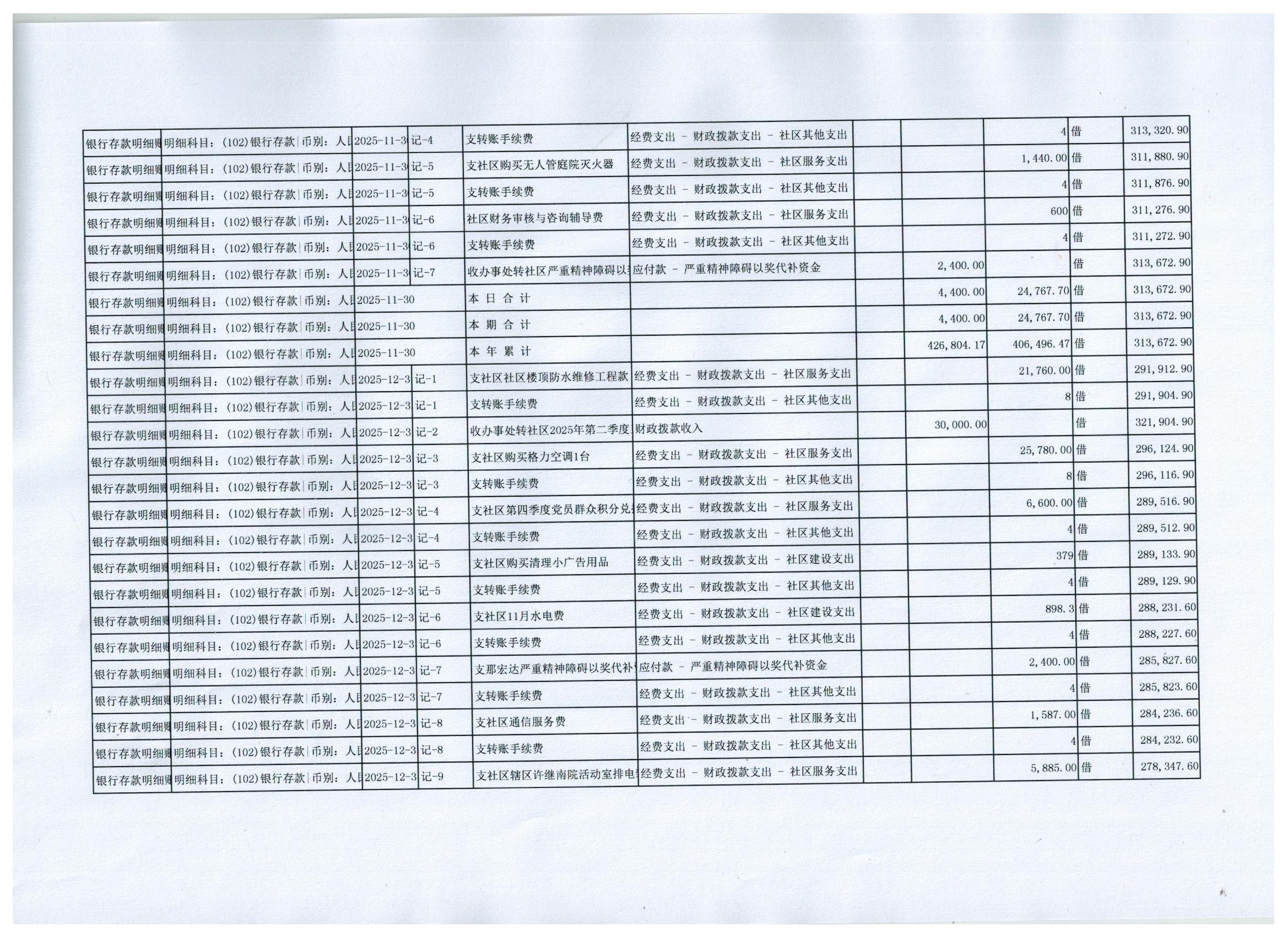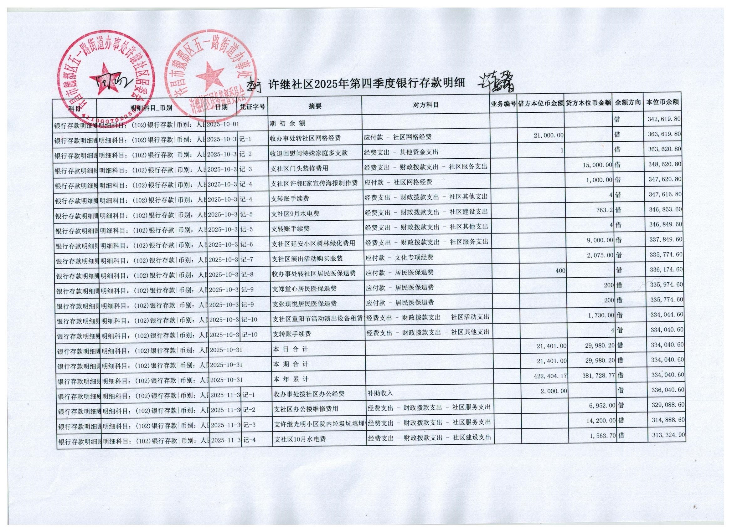 五一路街道办事处许继社区2025年第四季度银行存款收支公开表