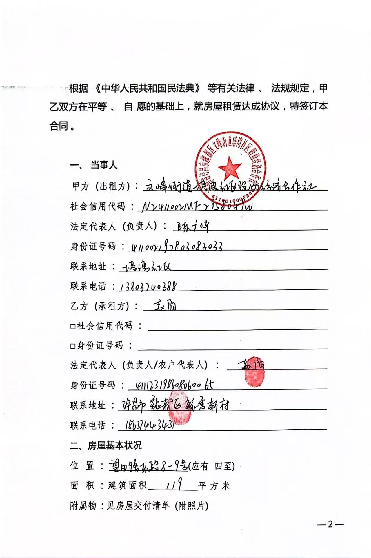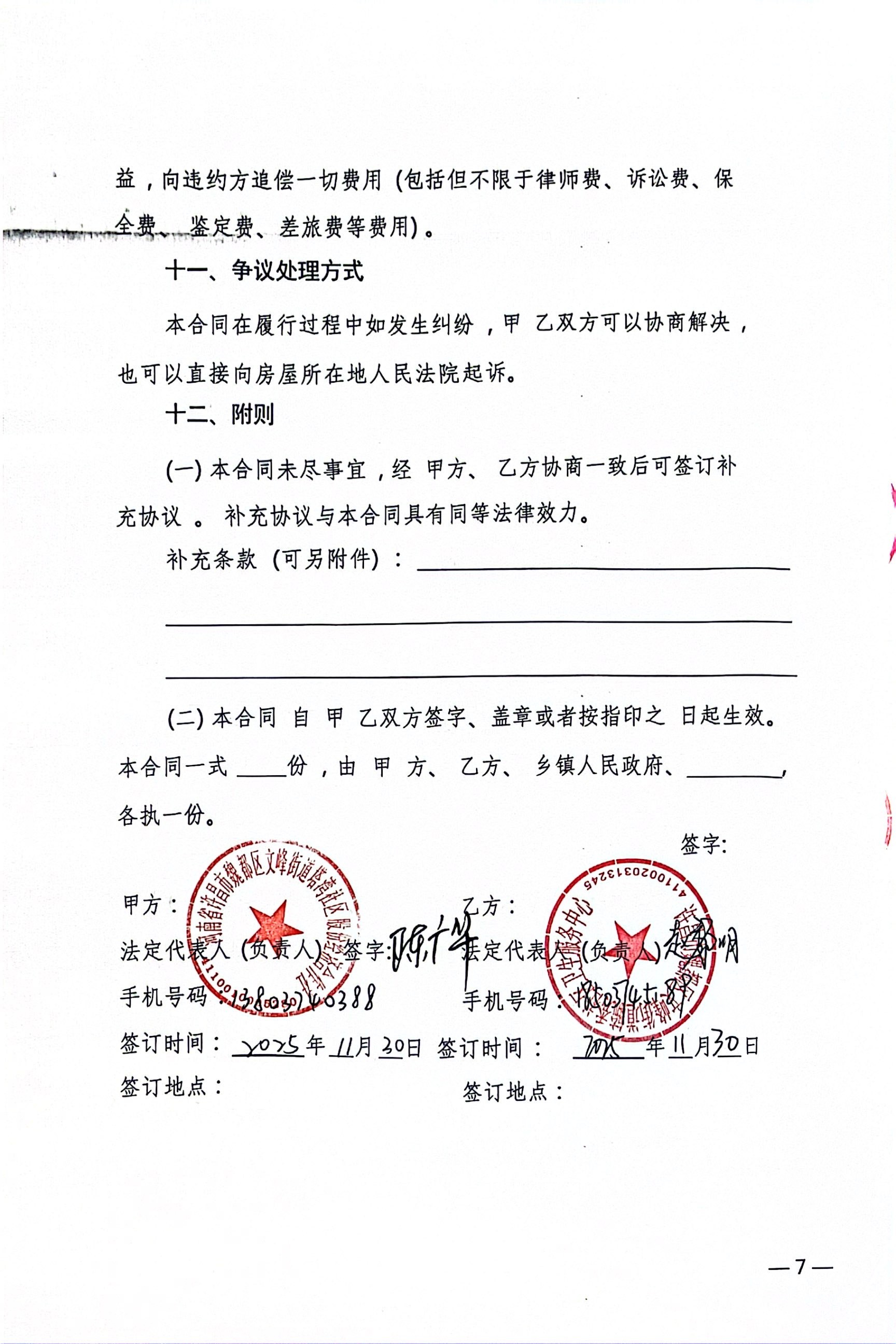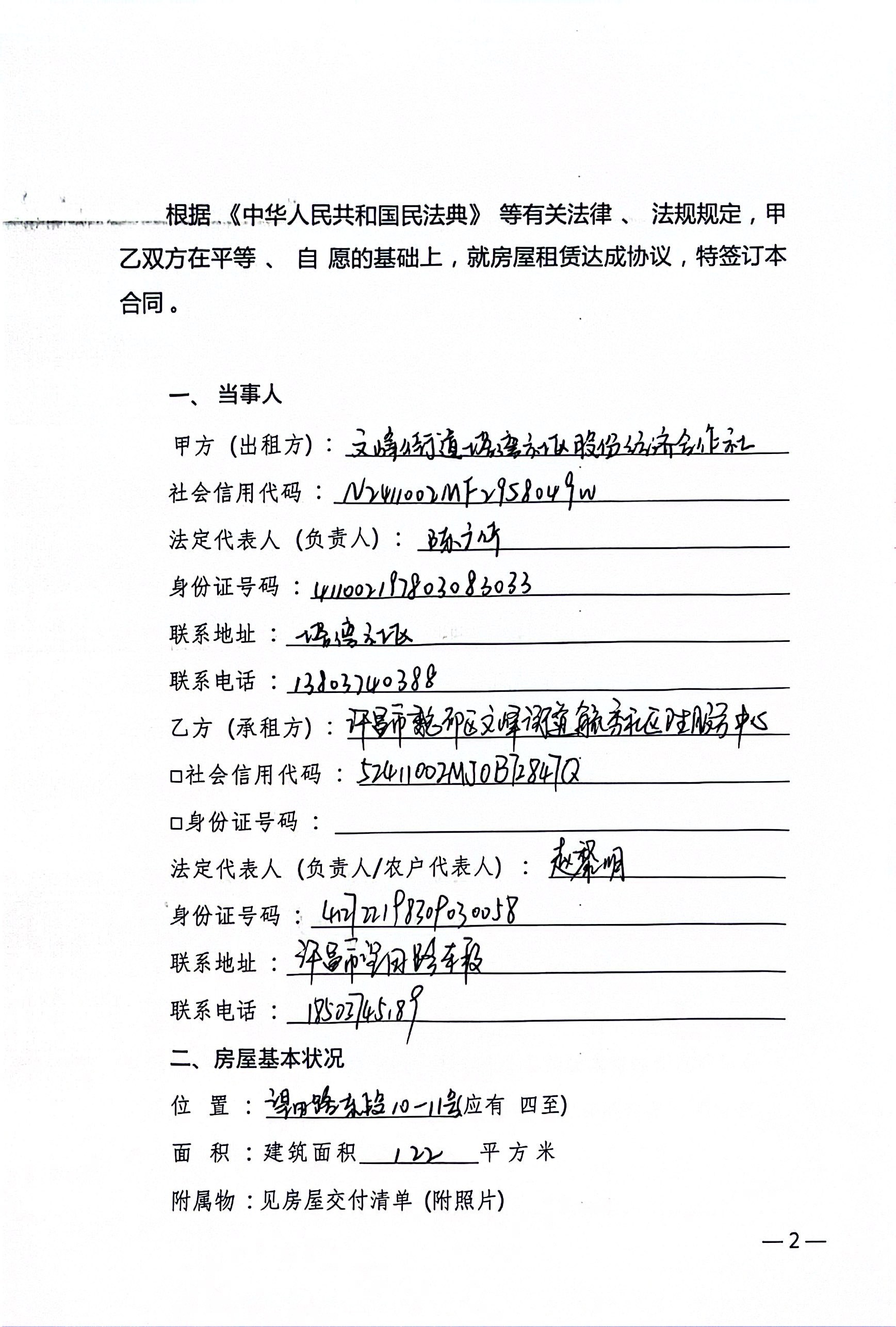 文峰办事处塔湾社区2025年第四季度门面房租赁协议公开