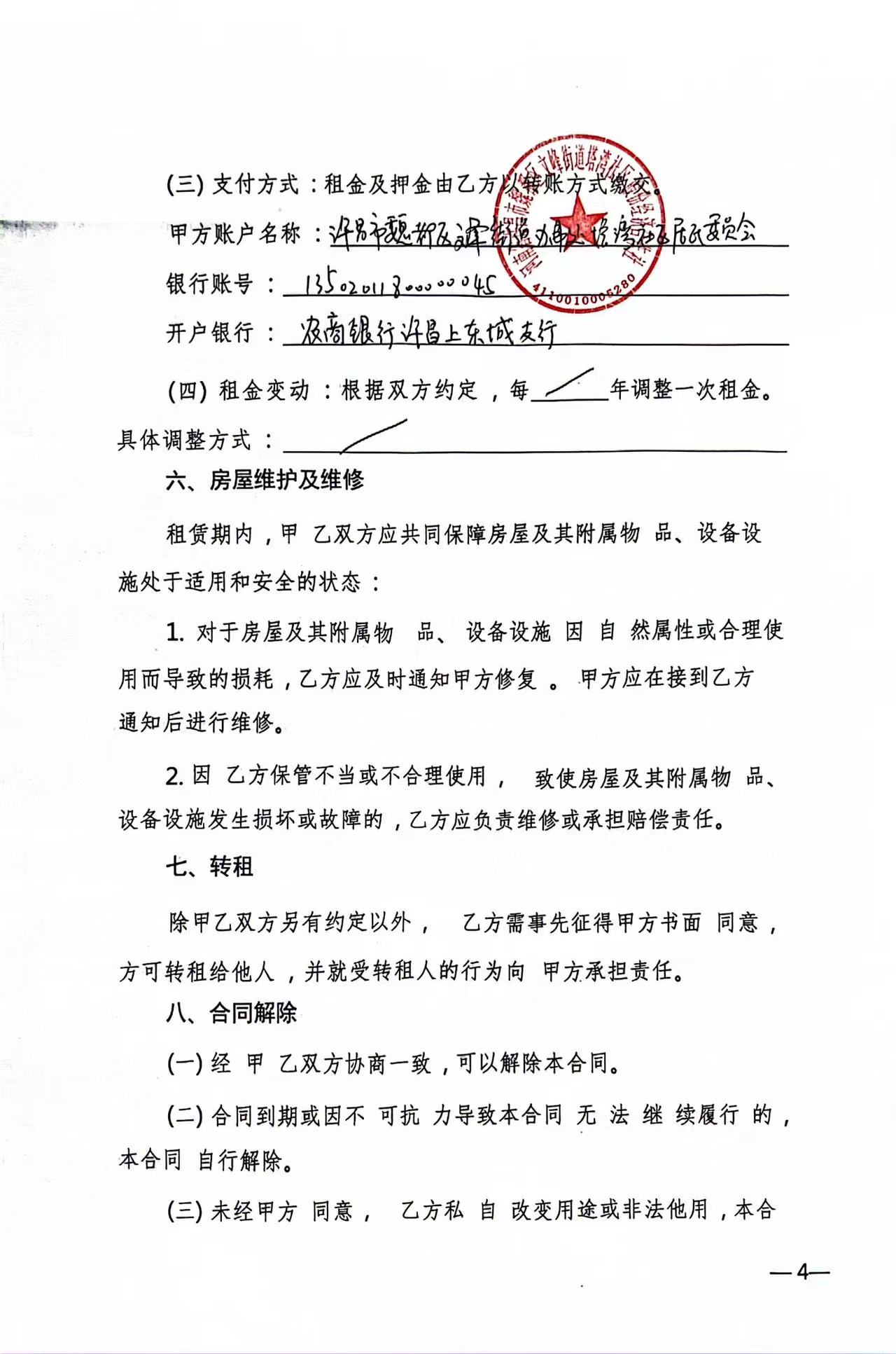 五一路办事处樊沟社区租赁合同公示