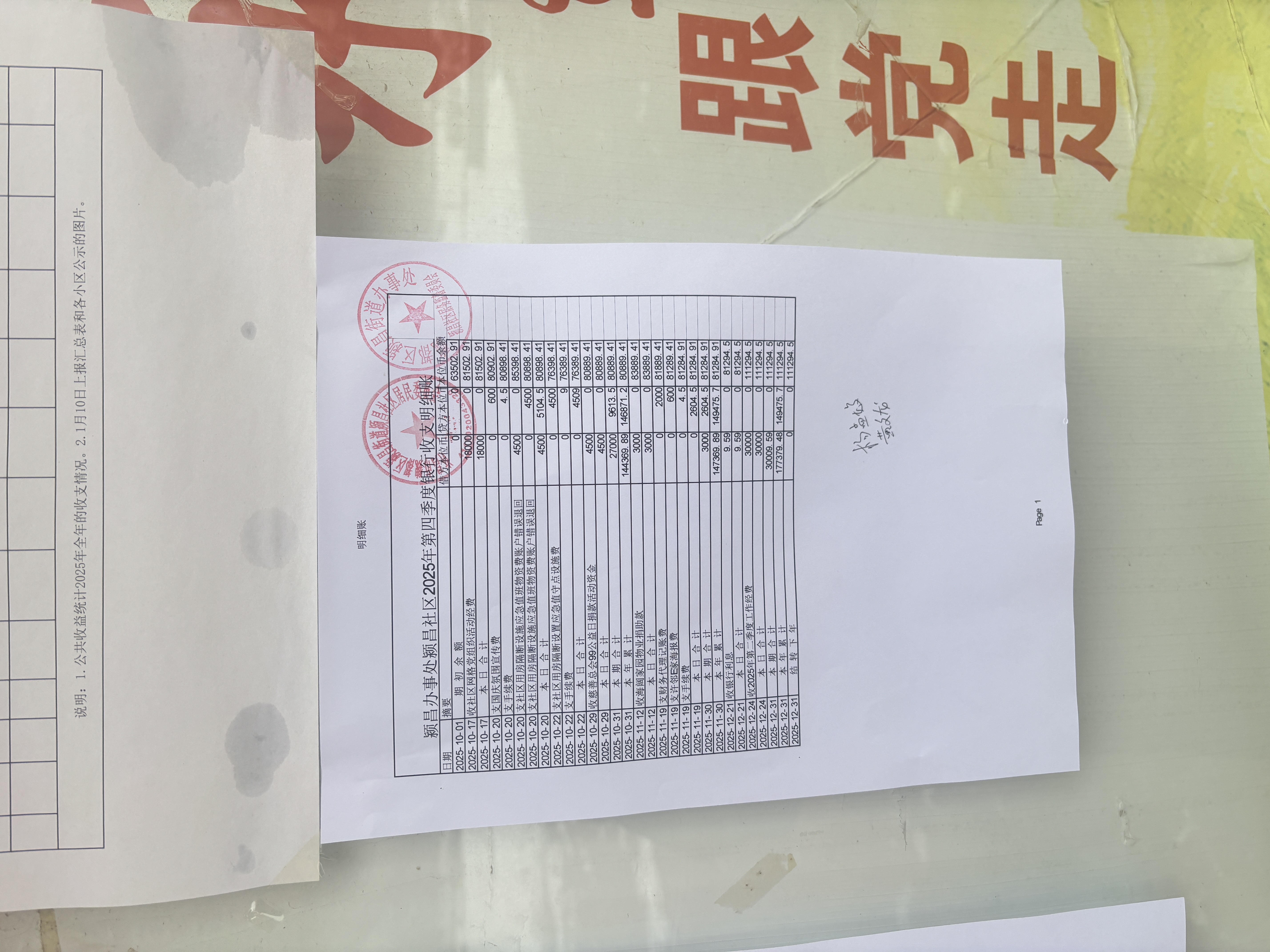 颍昌街道办事处颍昌社区2025年第四季度银行存款收支公开表