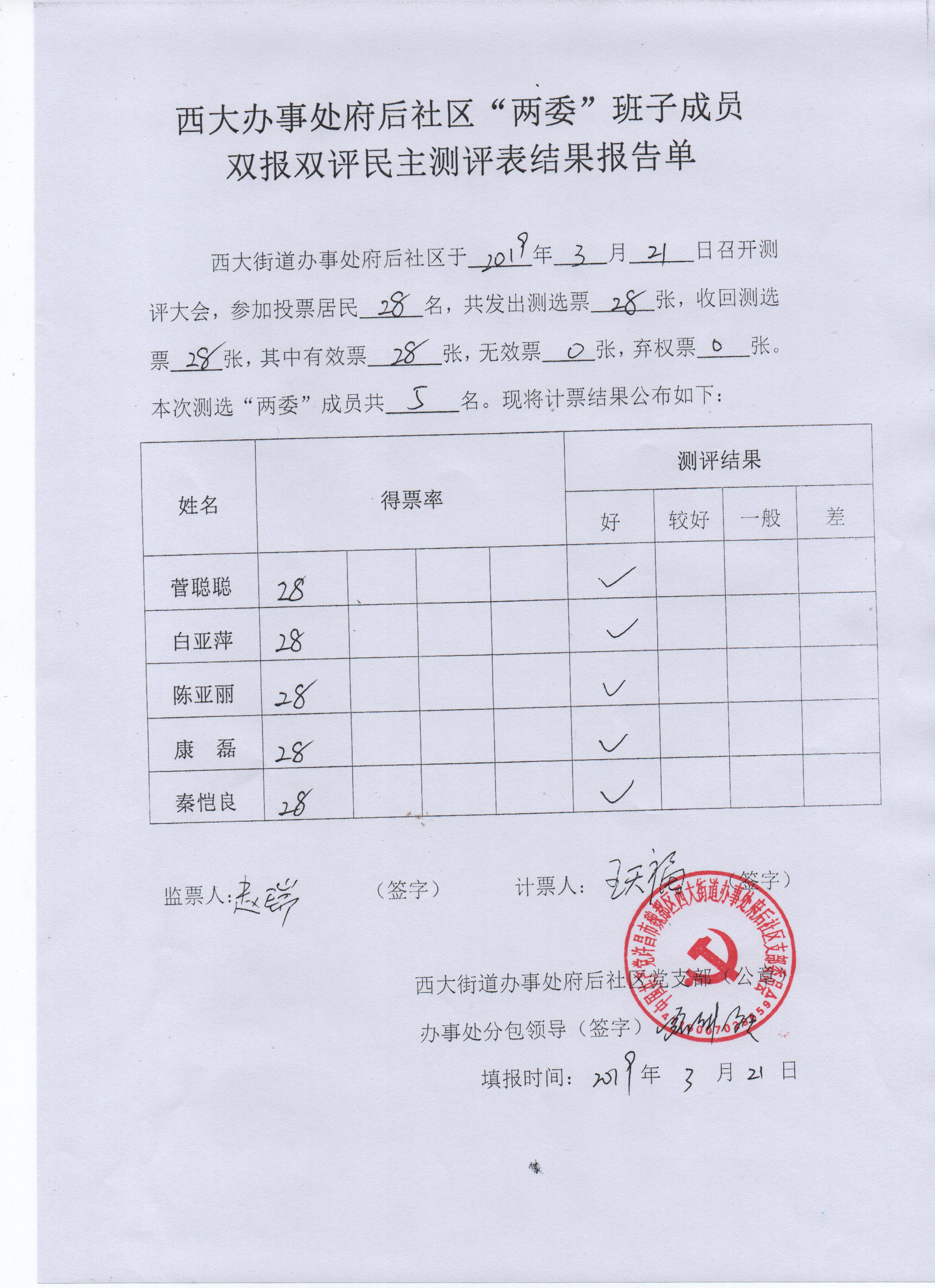 西大办事处府后社区“双报双评”评议结果