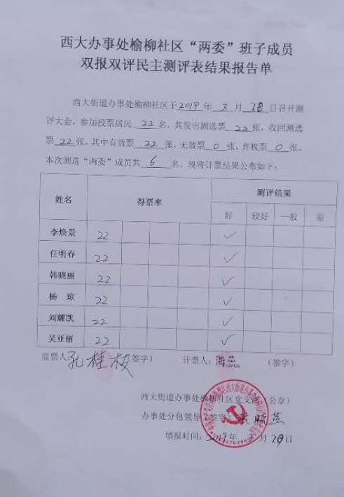 五一路办事处樊沟社区“双报双评”评议结果公示
