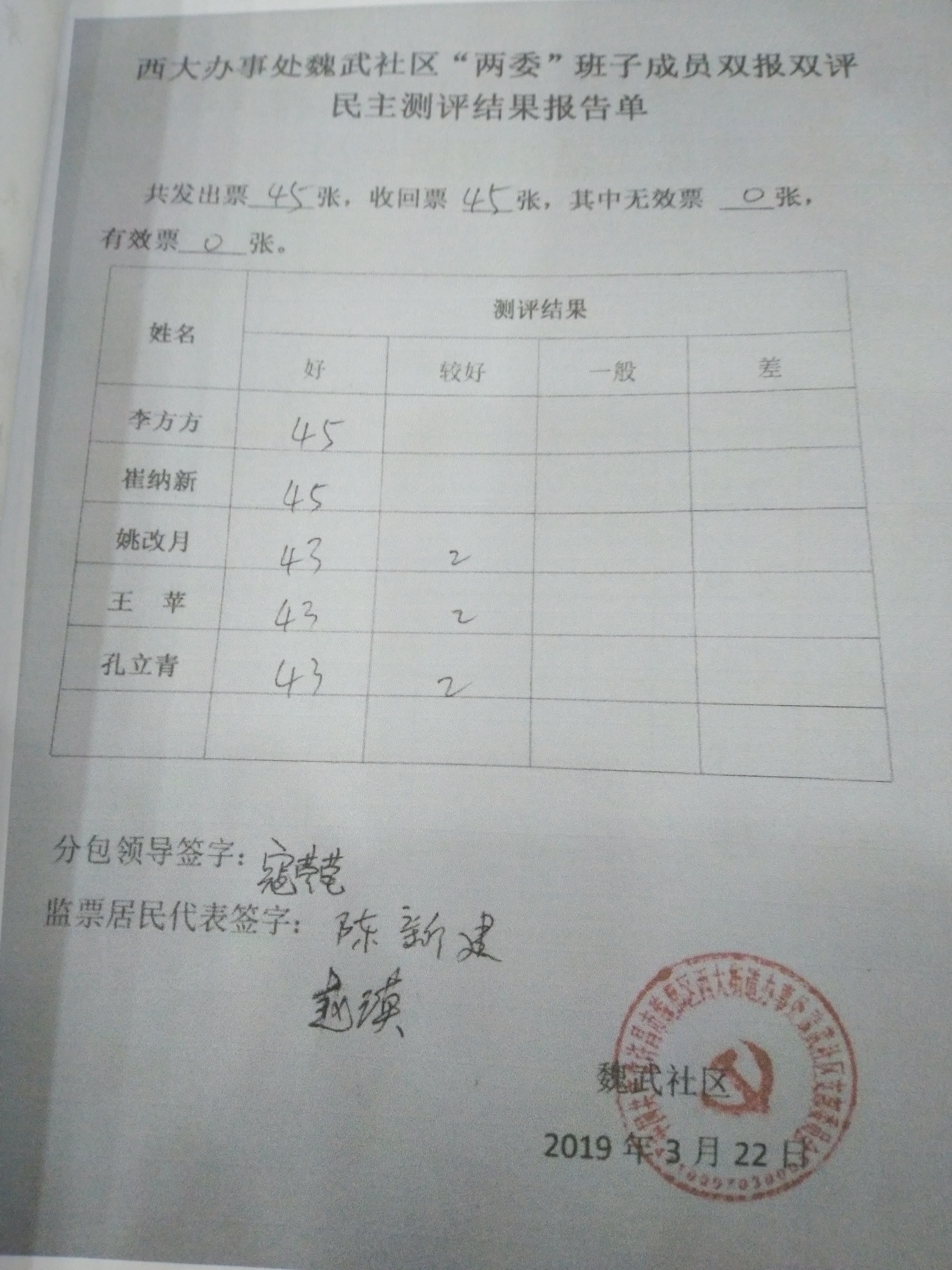 五一路办事处樊沟社区“双报双评”评议结果公示