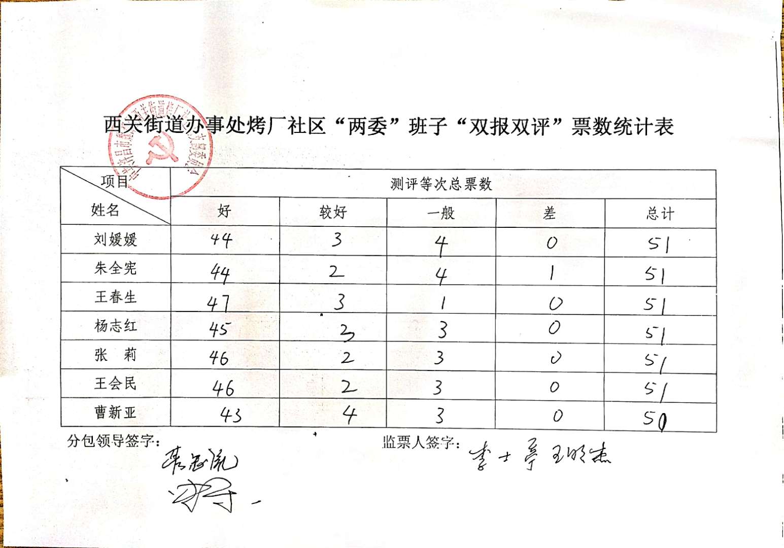 五一路办事处樊沟社区“双报双评”评议结果公示