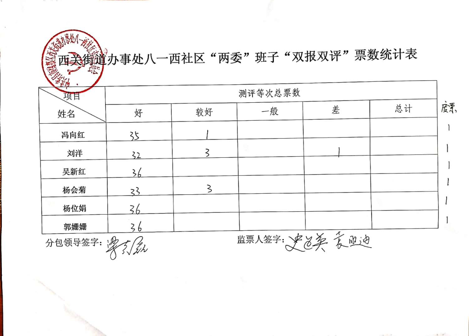 西关办事处八一西社区“双报双评”评议结果