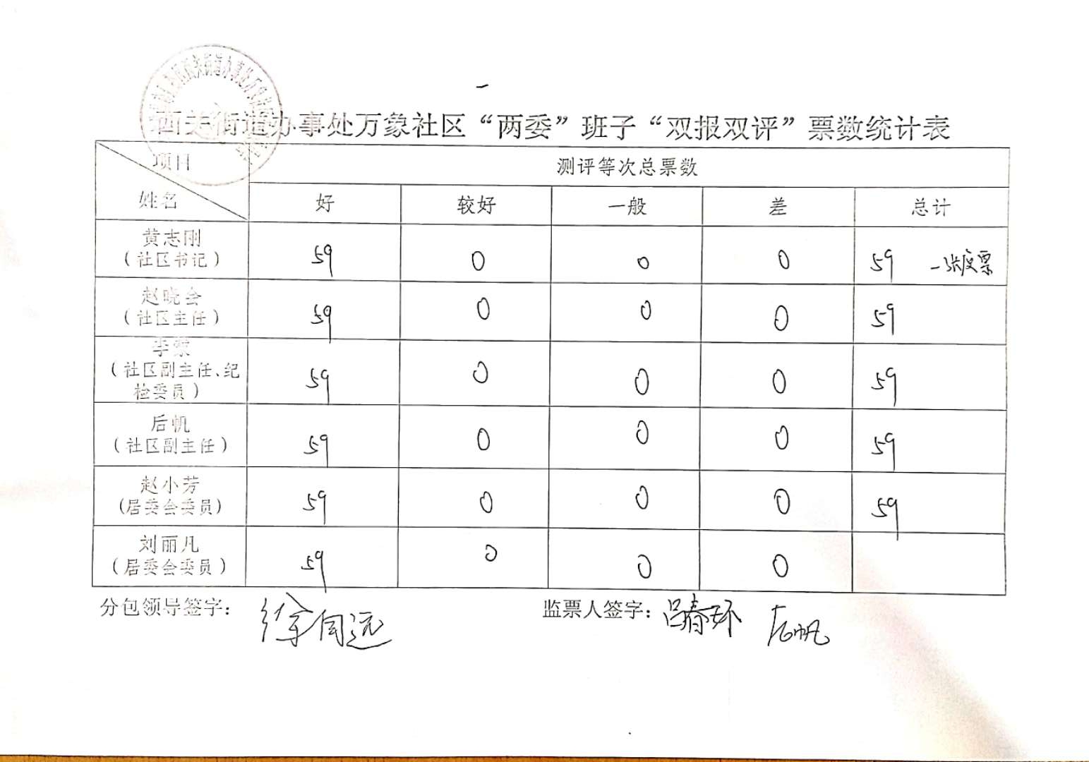 五一路办事处樊沟社区“双报双评”评议结果公示