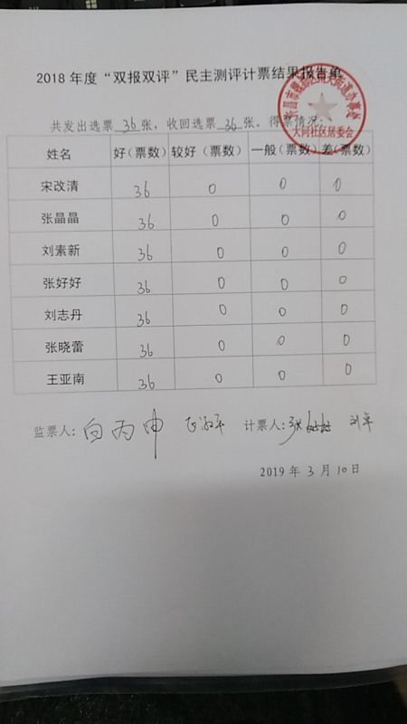 五一路办事处樊沟社区“双报双评”评议结果公示