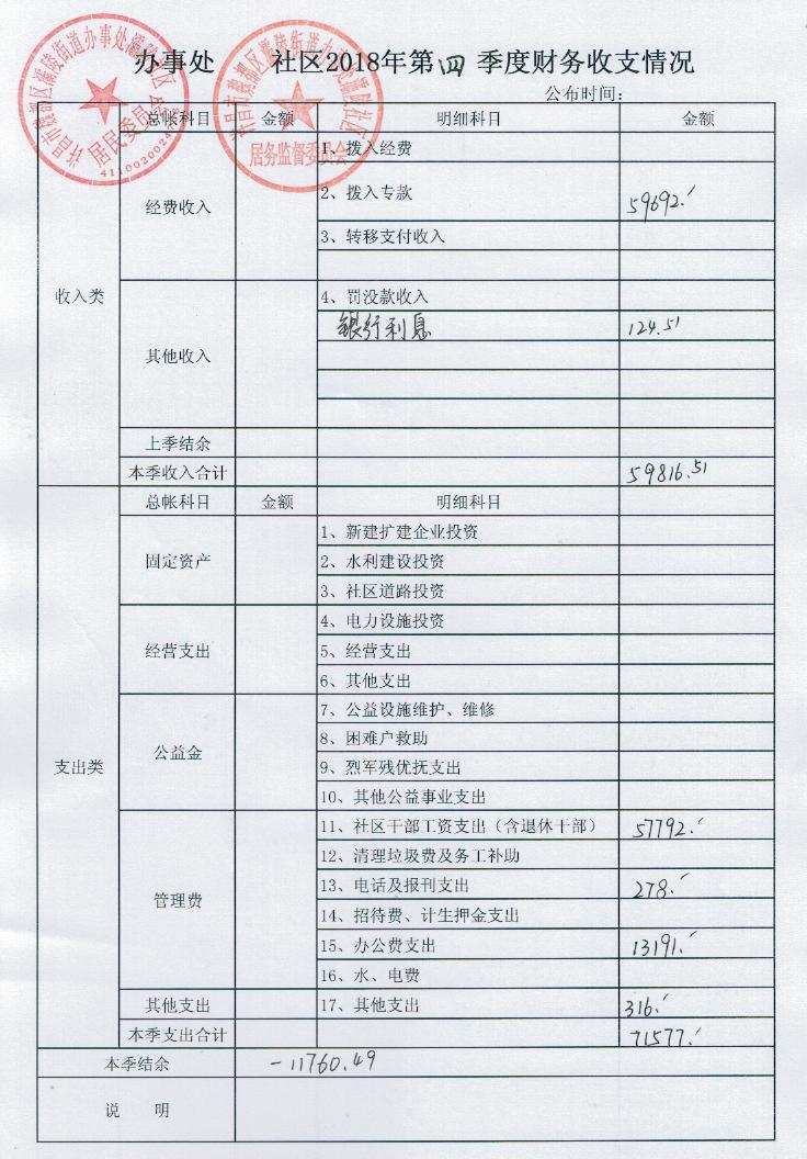 灞陵办事处灞陵社区2018年第四季度财务公开表