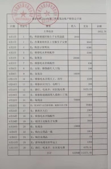 五一路办事处光明社区2019年第一季度财务公开表