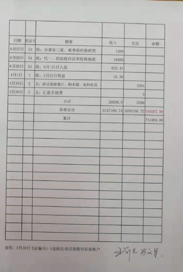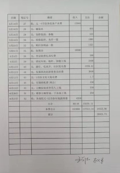魏北办事处郭楼社区第三季度财务公开